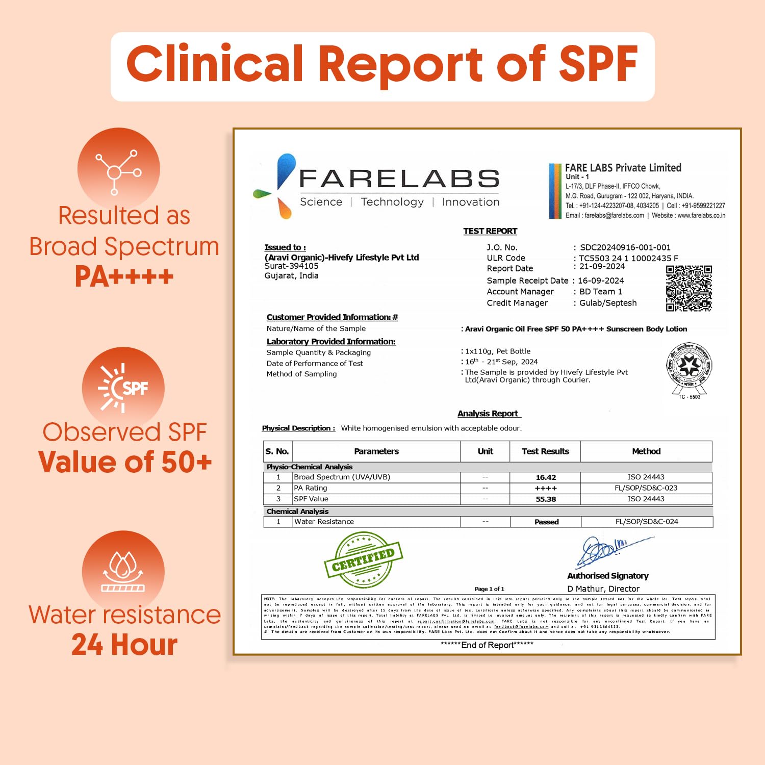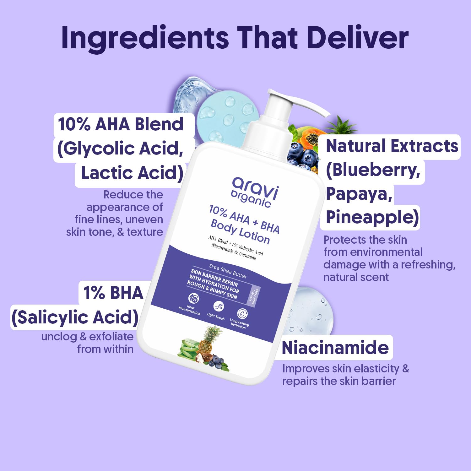 Aravi Organic De-Tan Body Lotion Combo | AHA BHA Body Lotion & SPF 50 PA++++ Sunscreen
