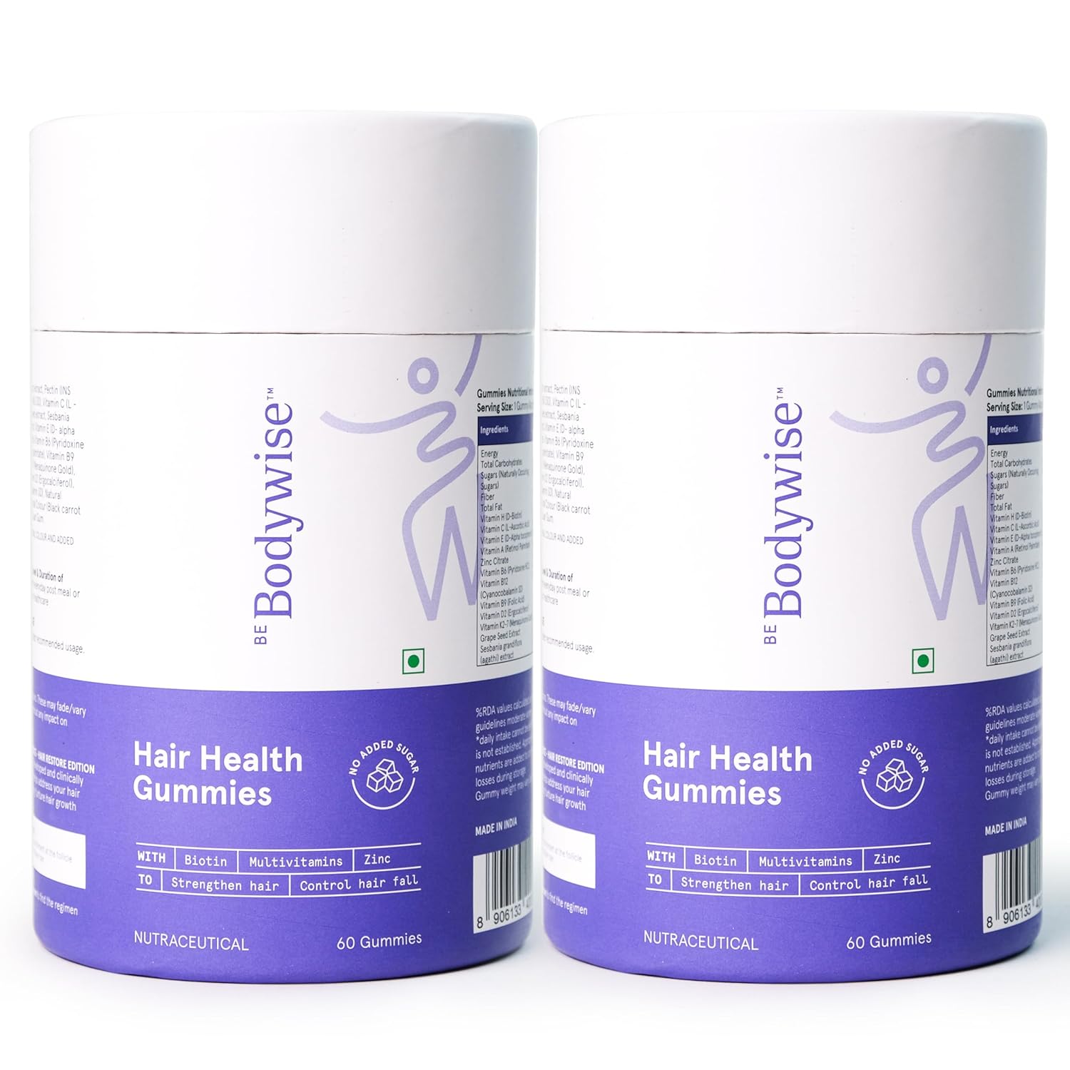 Be Bodywise Biotin Hair Gummies With Biotin, Zinc, Folic Acid, Fibre & Multivitamin | Strawberry Flavored | No Added Sugar & Gut Friendly