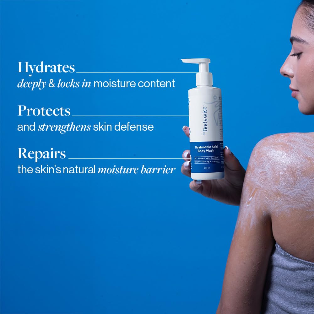 Be Bodywise Hyaluronic Acid Body Wash transforms your daily shower into a nourishing ritual. Fortified with 1% pure ceramides—20 times higher than industry standards—this advanced formula works alongside hyaluronic acid and allantoin to deeply hydrate and protect your skin barrier. The optimal blend of ceramides, cholesterol, and fatty acids restores moisture and elasticity, while hyaluronic acid plumps skin for a healthier, more vibrant appearance. Allantoin soothes irritation and itching, leaving your skin feeling refreshed and revitalized. Perfect for dry, dull, and sensitive skin types, this luxurious body wash delivers professional-grade hydration in every wash.