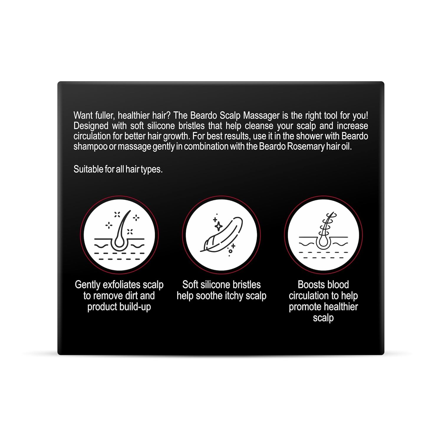 BEARDO Scalp Massager For Hair With Removable Handle Experience the soothing benefits of a professional scalp massage at home. This innovative BEARDO scalp massager features soft, flexible bristles designed to gently stimulate your scalp while promoting better blood circulation. The removable handle offers convenient storage and easy portability, making it perfect for travel or everyday use. Ideal for relieving tension, enhancing relaxation, and supporting healthier hair growth. Transform your hair care routine with this practical, user-friendly tool that delivers salon-quality results.