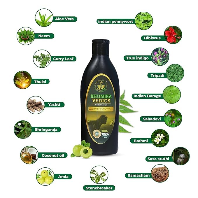 Bhumika Vedics Herbal Hair Oil Indigofera,Aloe vera,Neem, Amla, Bhringraj and Coconut Oil 200 ml