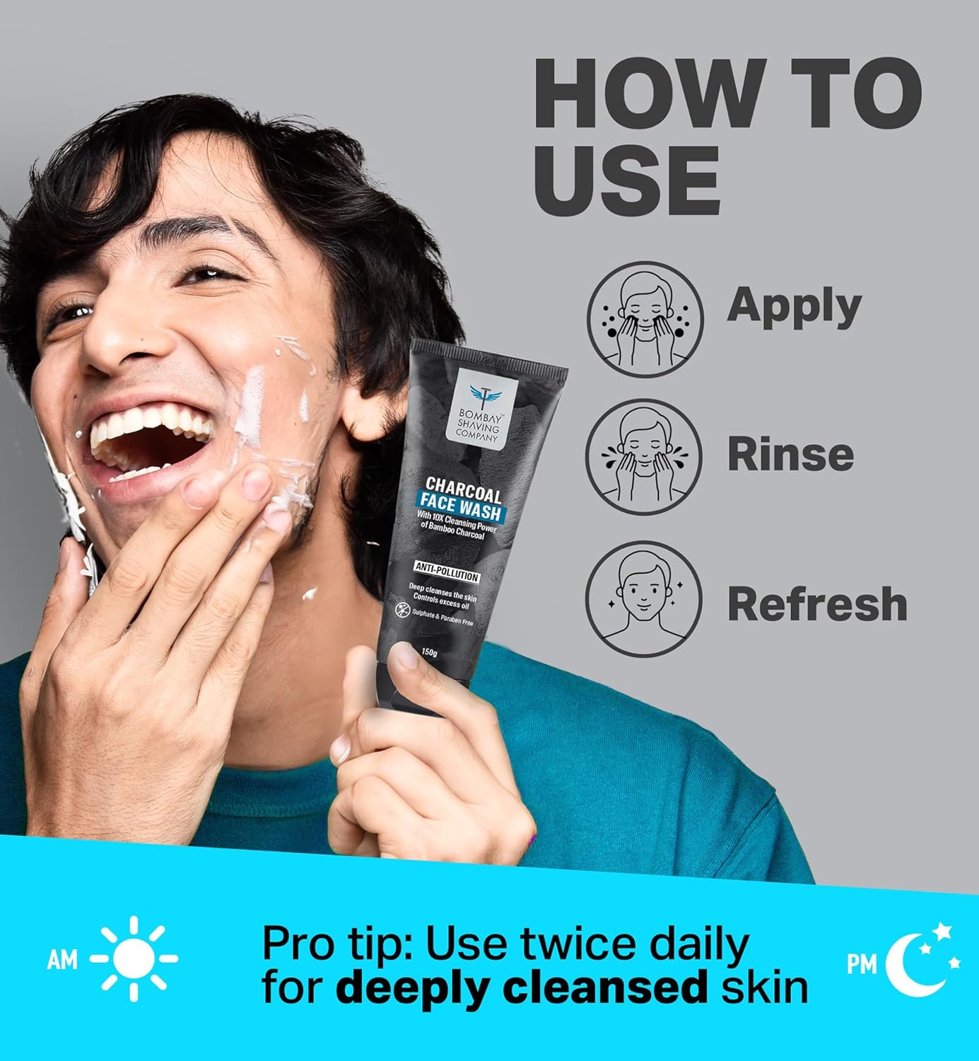 Cleanse and refresh your skin with BOMBAY SHAVING COMPANY Charcoal Facewash, specially formulated for men. This dual pack gives you 300g of powerful cleansing action that removes dirt, oil, and impurities without over-drying your complexion. Activated charcoal works to unclog pores and detoxify your skin, leaving it feeling clean and revitalized. The gentle formula is suitable for daily use and helps reduce breakouts while maintaining your skin's natural balance. Perfect for all skin types, this facewash prepares your face for a better shave and promotes healthier-looking skin. Stock up with two 150g bottles and keep your grooming routine consistent.