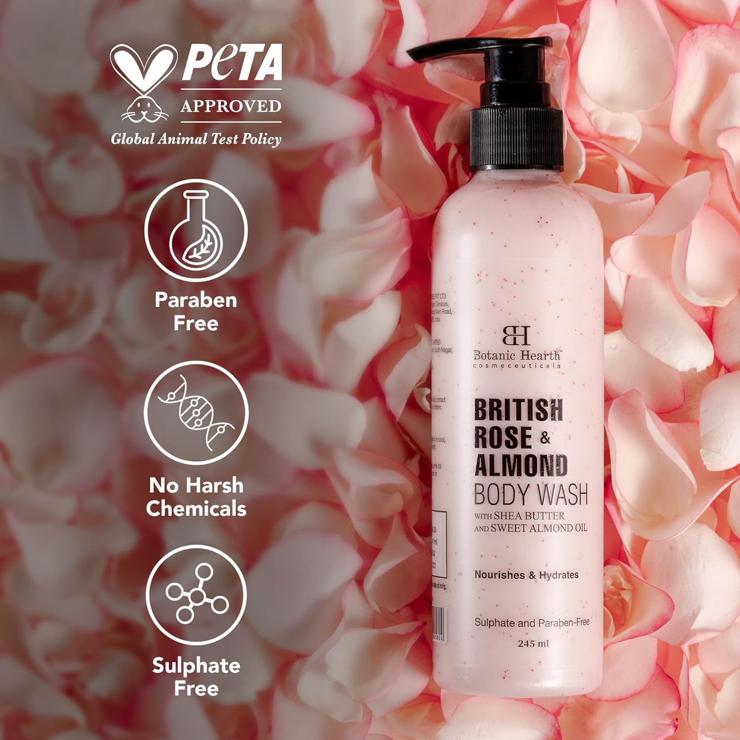 Botanic Hearth British Rose & Almond Body Wash with Shea Butter-245ML