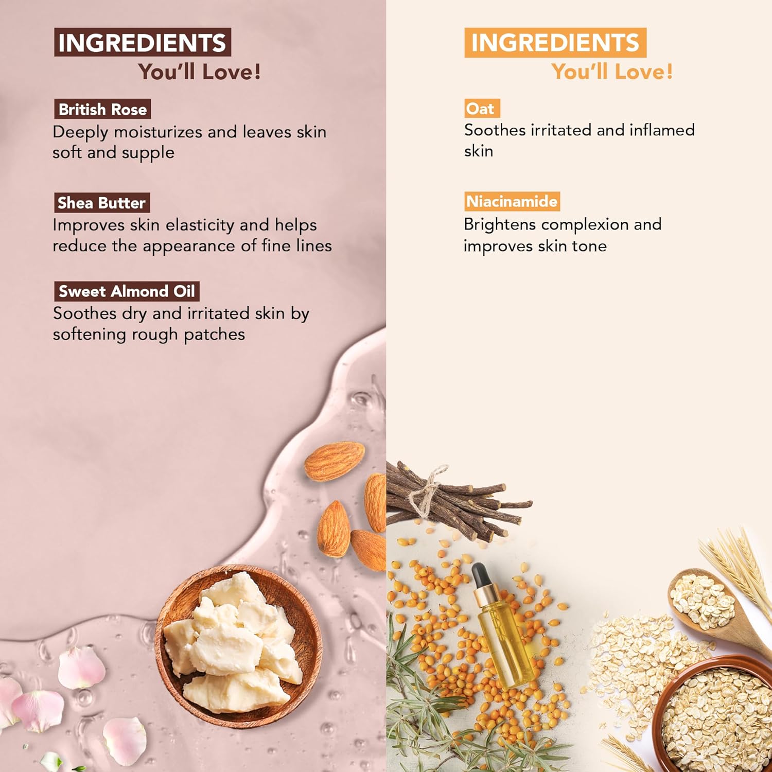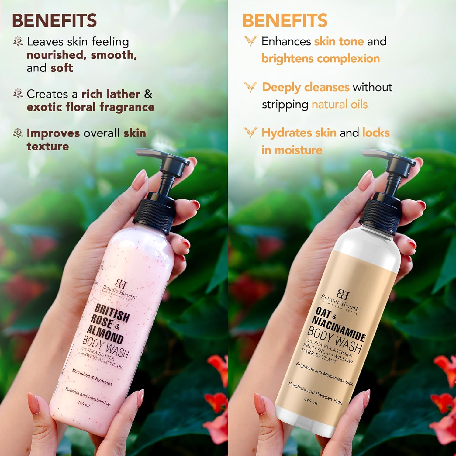 Botanic Hearth Oat Niacinamide and British Rose Almond Body Wash 245 ml Pack Of 2