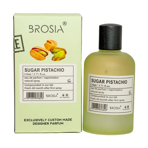 Brosia Suger Pistachio EDP 100ml for Men & Women is a luxurious and indulgent fragrance that blends fruity, nutty, and gourmand notes into a captivating scent. It opens with a vibrant mix of Italian bergamot, pistachio gelato, hazelnut, sweet rum, and cardamom, creating a fresh yet rich start. The heart unfolds with a delicate blend of geranium, white peony, muguet, jasmine, raspberry, white peach, and pear, adding a sweet, floral-fruity complexity. The fragrance then settles into a gourmand and warm base of whipped cream, marshmallows, cotton candy, Turkish delight accord, cocoa, cedarwood, sandalwood, and tonka, leaving a comforting and lasting impression. This Eau de Parfum is designed for both men and women who enjoy a sweet, nutty, and warm fragrance perfect for any occasion.