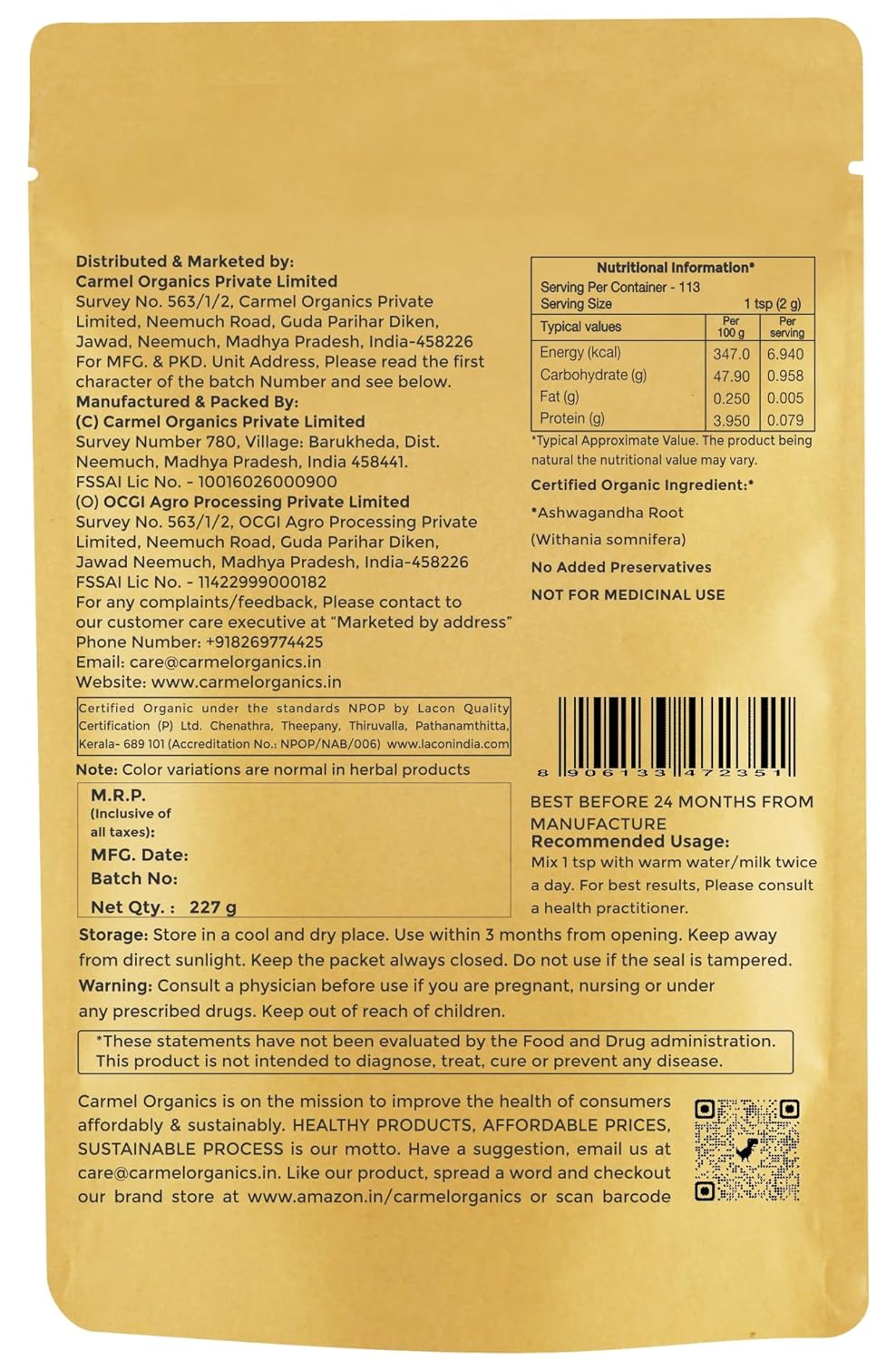 CARMEL ORGANICS Ashwagandha Root Powder (227 Grams)