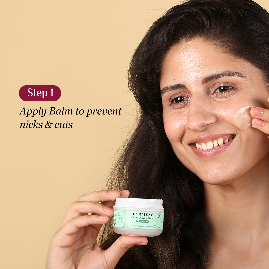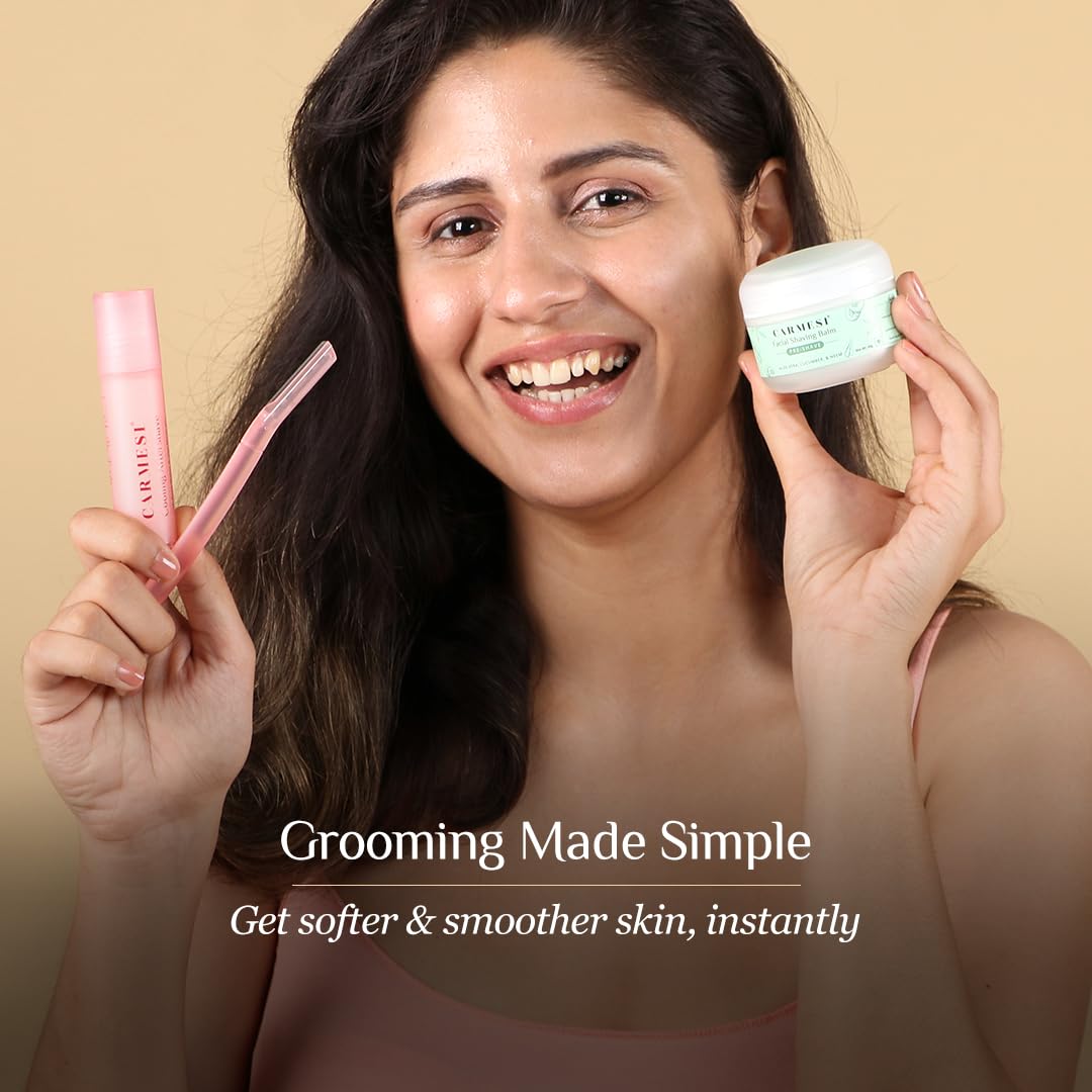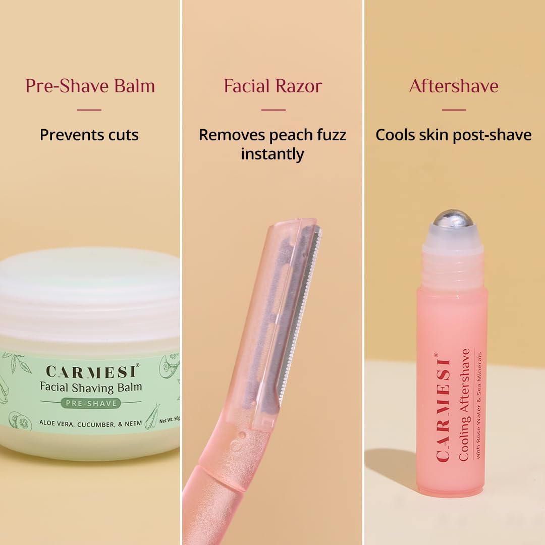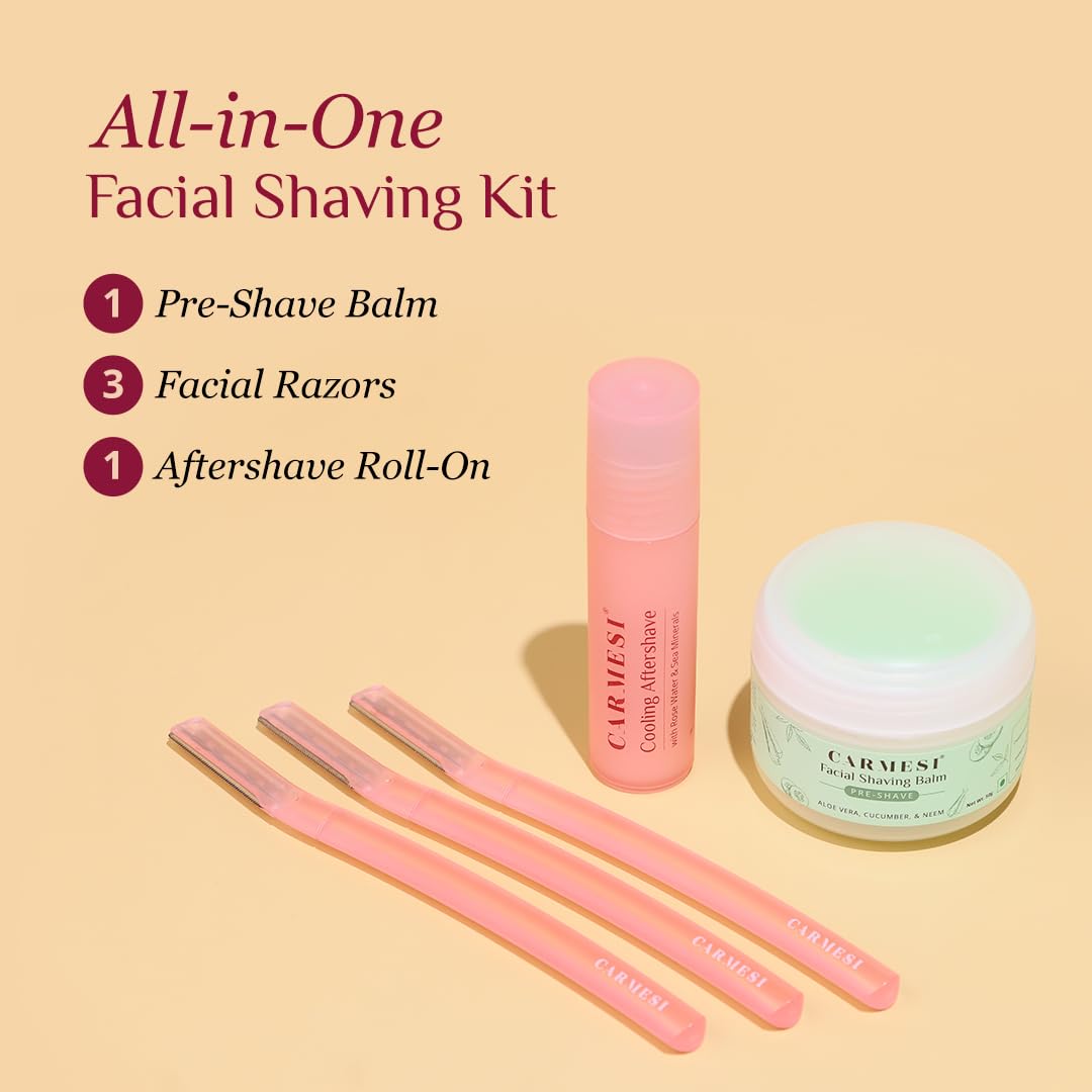 Carmesi All-in-One Face Shaving Kit for Women | 1 Pre-Shave Balm + 3 Reusable Face Razors + 1 Aftershave Roll On