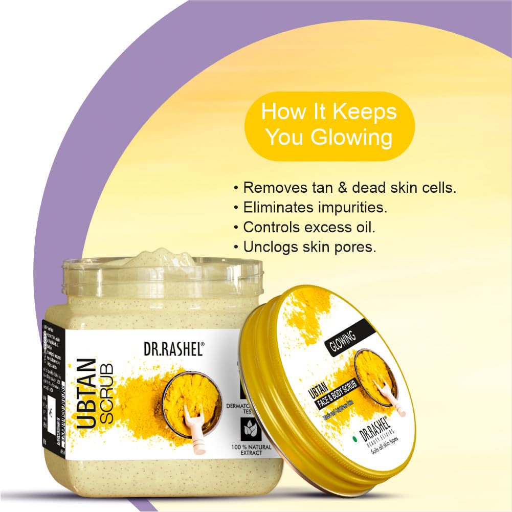 DR.RASHEL Ubtan Scrub For Face & Body With Haldi, Chandan & Kesar-380ML