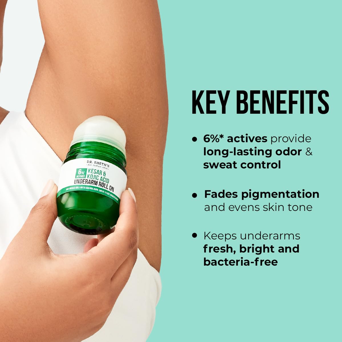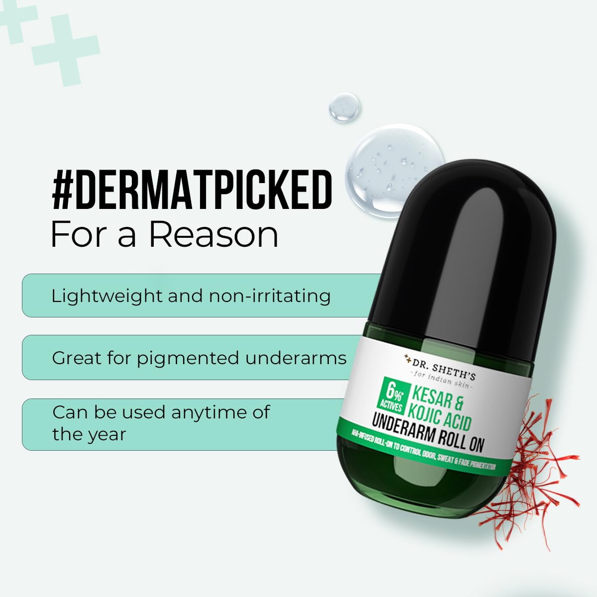 Dr. Sheth's Kesar & Kojic Underarm ROLL-ON|6% Actives-AHA,Kojic Acid & Niacinamide-50ml