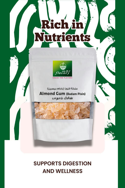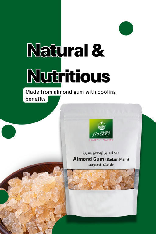Flavory Almond Gum (Badam Pisin) is a natural, nutrient-rich ingredient known for its cooling properties and health benefits. Often used in traditional remedies and recipes, this almond gum is perfect for preparing refreshing drinks, desserts, or adding to smoothies. Rich in essential vitamins and minerals, it supports digestion and overall wellness. The 100g pack ensures you have enough for multiple uses, making it a versatile addition to your kitchen for a healthy lifestyle.