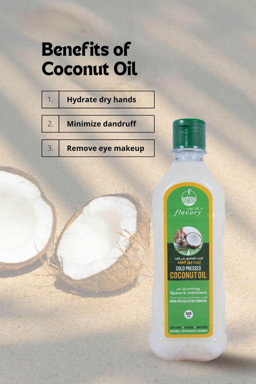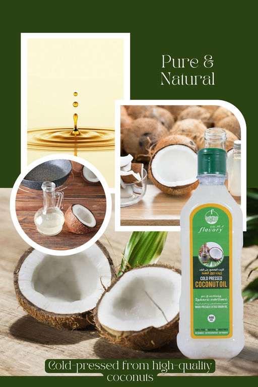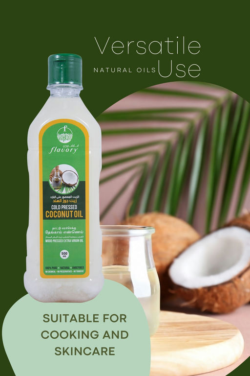 Flavory Cold Pressed Coconut Oil, Pure & Natural Oil for Cooking and Skincare, 500ml