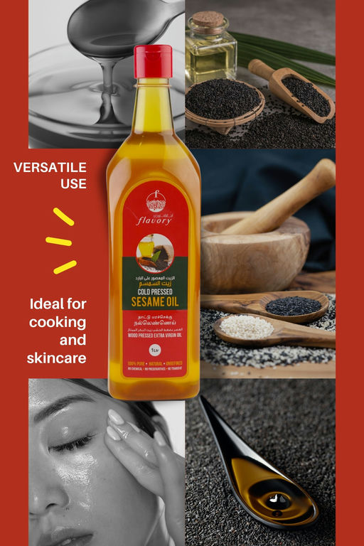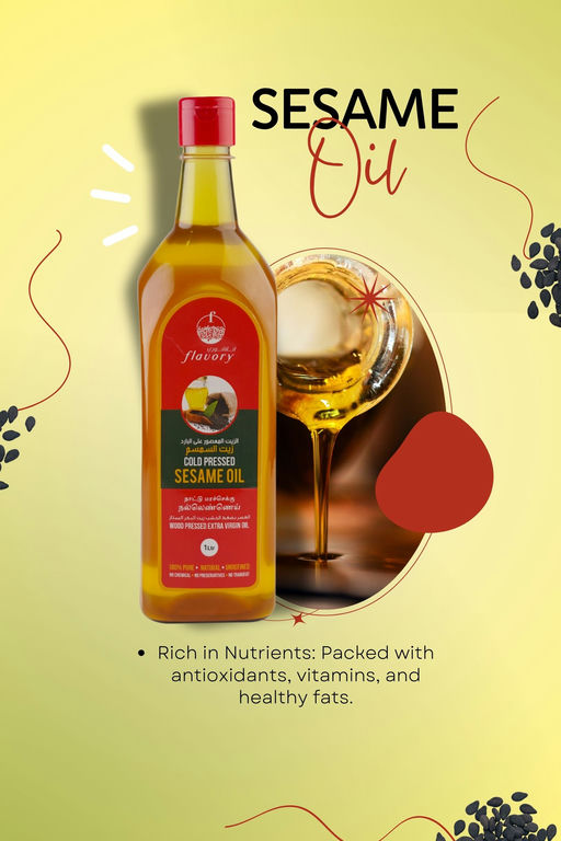 Flavory Cold Pressed Sesame Oil is a high-quality, pure oil extracted using the traditional cold pressing method to preserve its natural nutrients and flavor. This oil is rich in antioxidants, vitamins, and healthy fats, making it an ideal choice for both cooking and skincare. With its mild, nutty flavor, it enhances dishes like stir-fries, salads, and curries. Additionally, Flavory Cold Pressed Sesame Oil is great for massage and skin care, providing hydration and promoting healthy skin. Packaged in a 1-litre bottle, this versatile oil is a must-have in every kitchen and personal care routine.