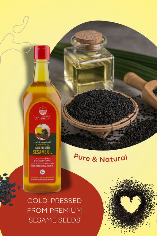 Flavory Cold Pressed Sesame Oil, Pure & Natural Oil for Cooking and Skin Care, 1 Litre