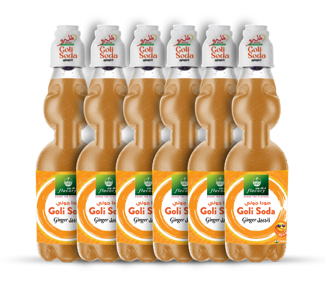 Flavory Goli Soda Carbonated Soft Drinks, Non alcoholic Flavoured Cool Drink, Indian Style Soda with Free Marble, Ginger - 6x300ml