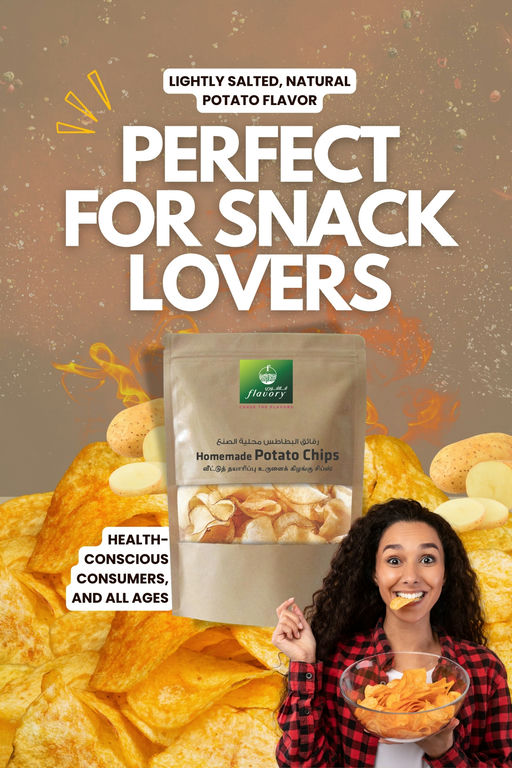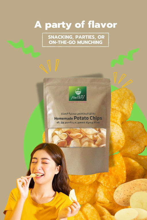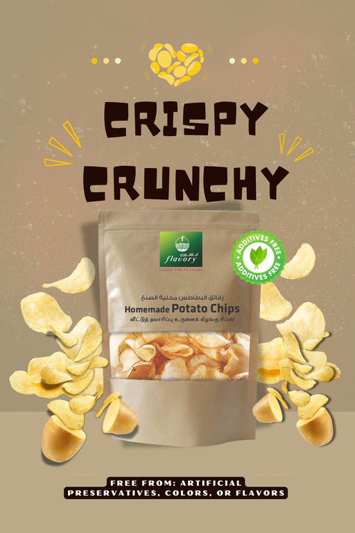 Flavory Natural Potato Chips are a crispy, crunchy snack made with fresh, high-quality potatoes, fried to perfection for an authentic, savory taste. These chips offer a delightful crunch in every bite, with no artificial additives or preservatives, making them a wholesome and satisfying treat. Ideal for snacking anytime, they provide the perfect balance of flavor and texture. Packed in a 100g bag, Flavory Natural Potato Chips are a great option for enjoying with friends, family, or as a quick snack during the day.