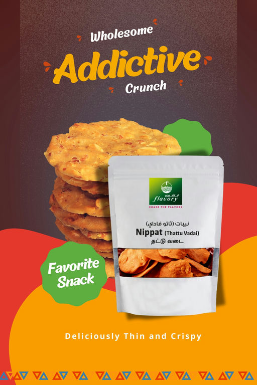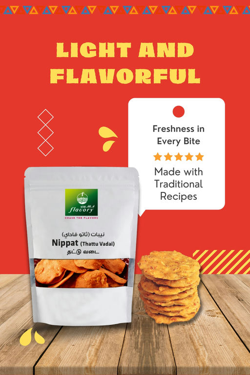 Flavory Nippat (Thattai) is a traditional South Indian savory snack made with rice flour, lentils, and a blend of spices.... Read more