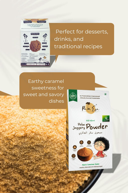 Flavory Palm Jaggery (Karupatti) Powder is a pure, natural sweetener made from the sap of palm trees, carefully processed to retain all its essential nutrients and unique, rich flavor. Unlike refined sugar, this palm jaggery powder is rich in minerals like iron, calcium, and potassium, making it a healthier alternative. With its earthy, caramel-like taste, it’s perfect for enhancing the flavor of traditional sweets, desserts, beverages, and even savory dishes. The 500g pack offers convenience and is perfect for daily use in your kitchen.