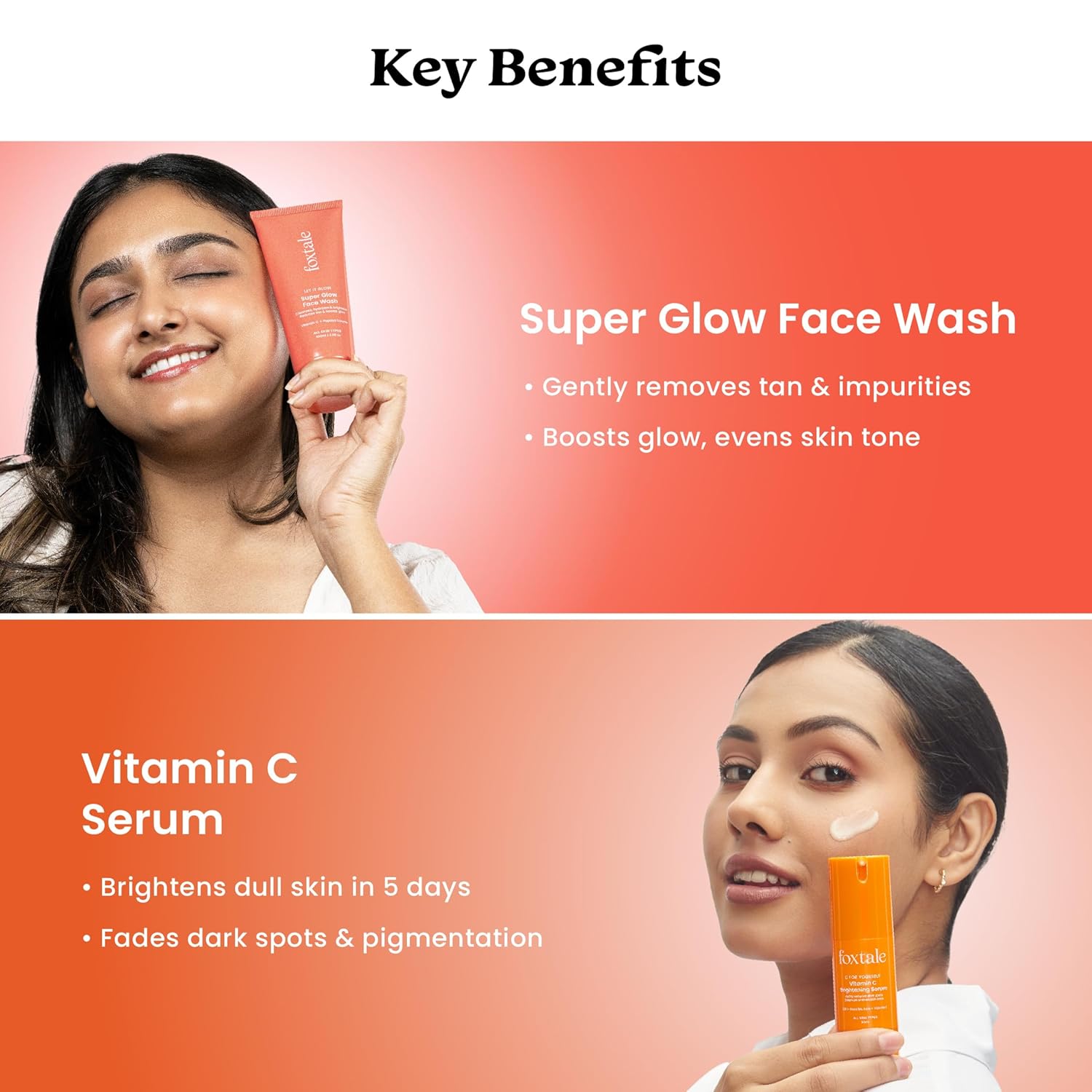 Foxtale Glow & Go Duo | Vitamin C Face Wash with Papaya Enzyme + 15% L-Ascorbic Acid Vitamin C Serum 100ml + 30ml