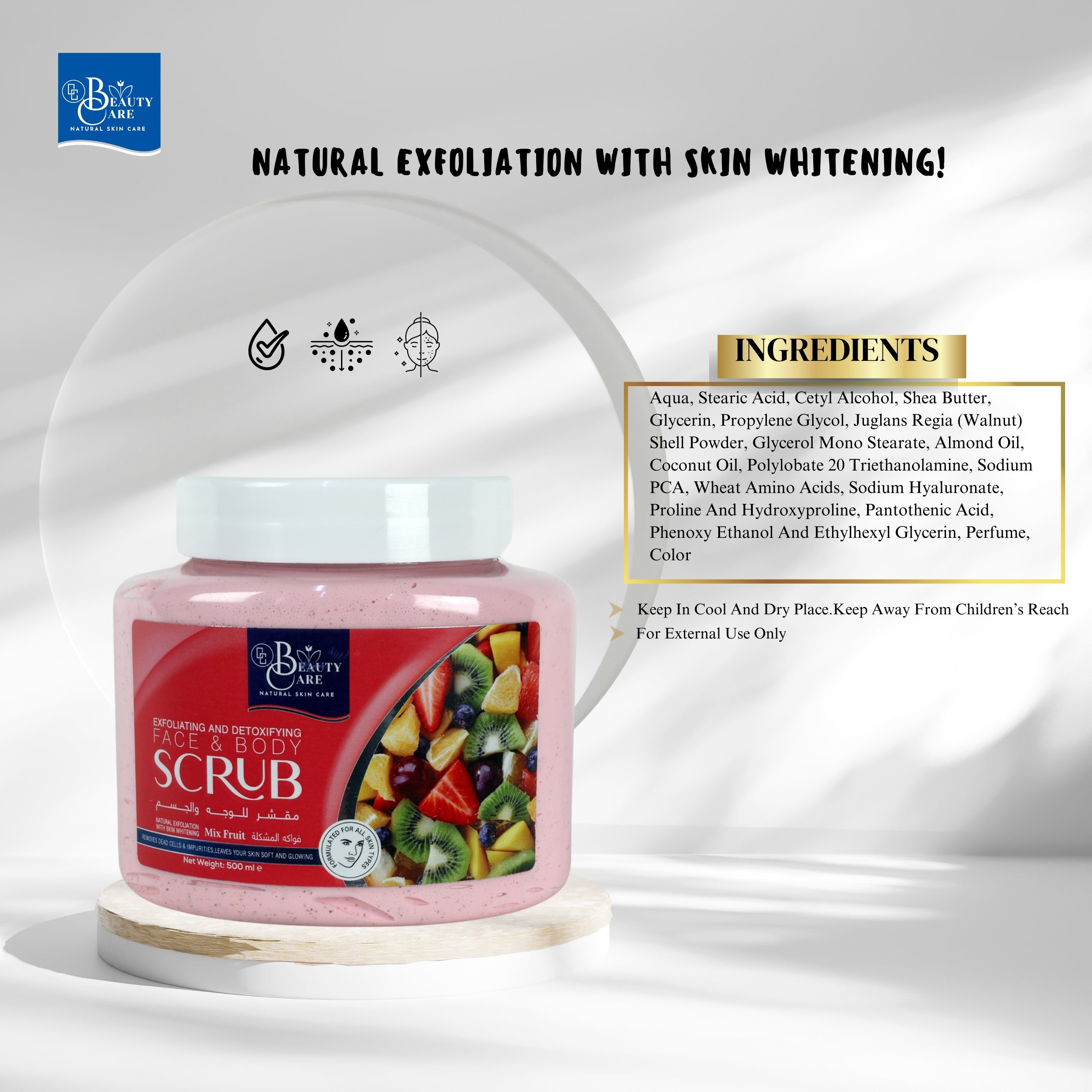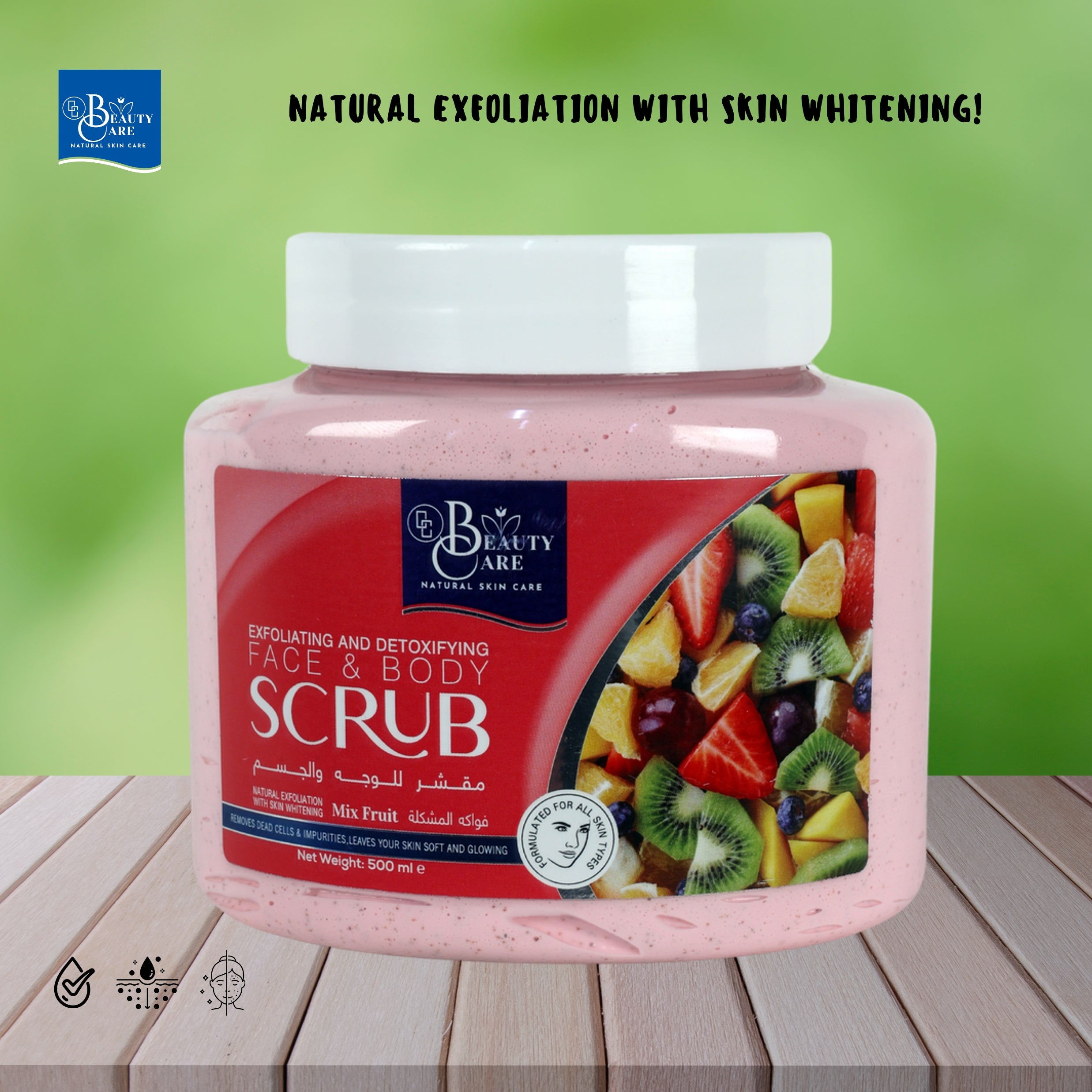 GC Beauty Care Exfoliating & Detoxifying Face & Body Scrub – Mix Fruit (500ml) For All Skin Types – Natural Exfoliation & Skin Whitening