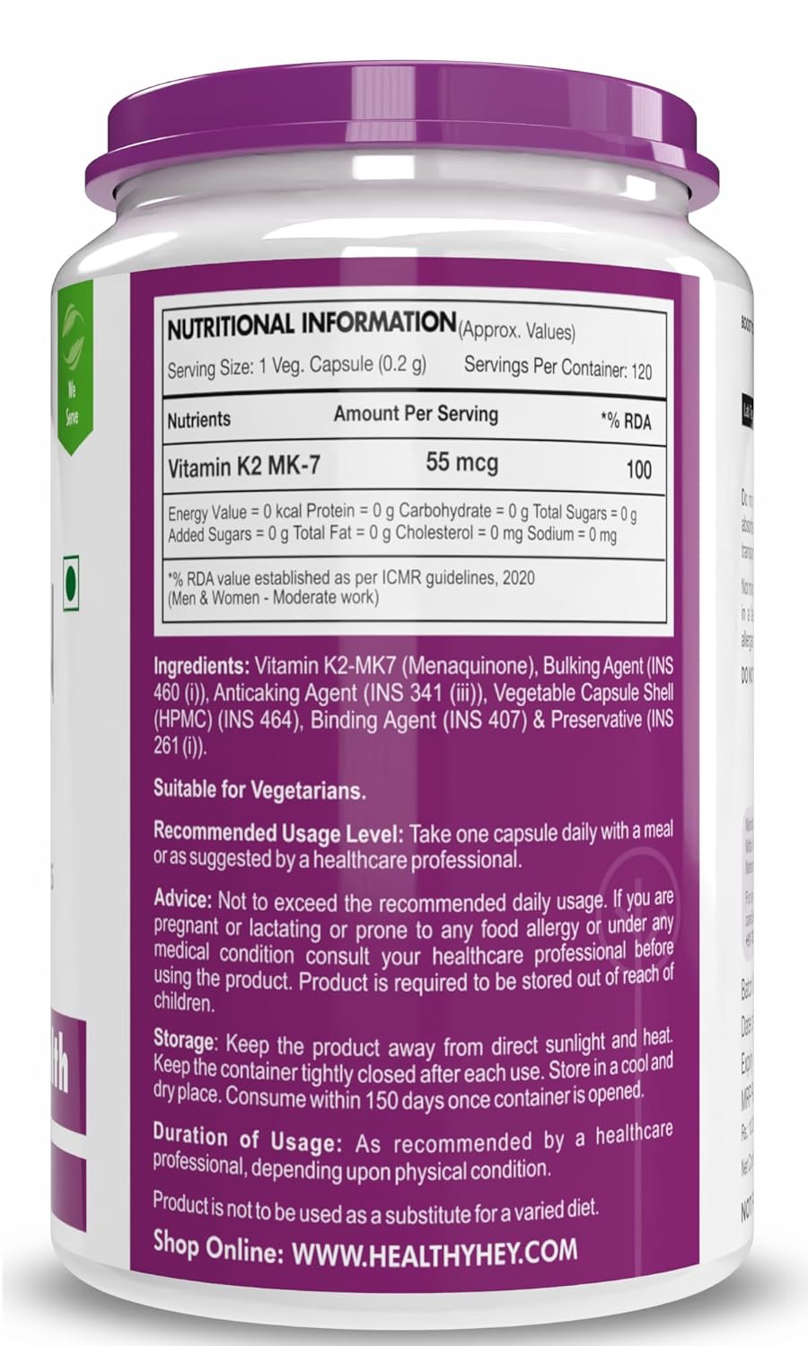 Healthy Hey Nutrition Vitamin K2 - 120 Capsules