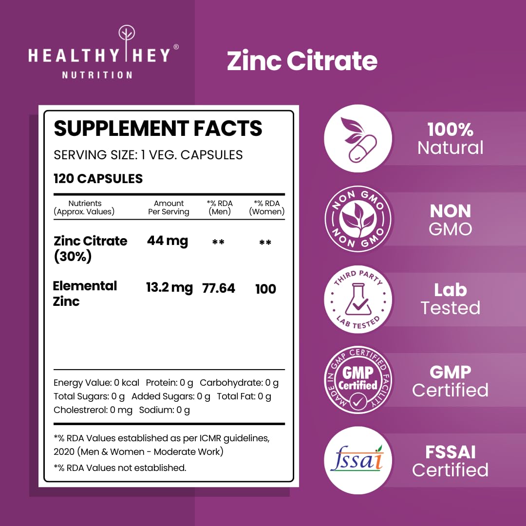 Healthy Hey Nutrition Zinc Citrate - 120 Veg Capsules