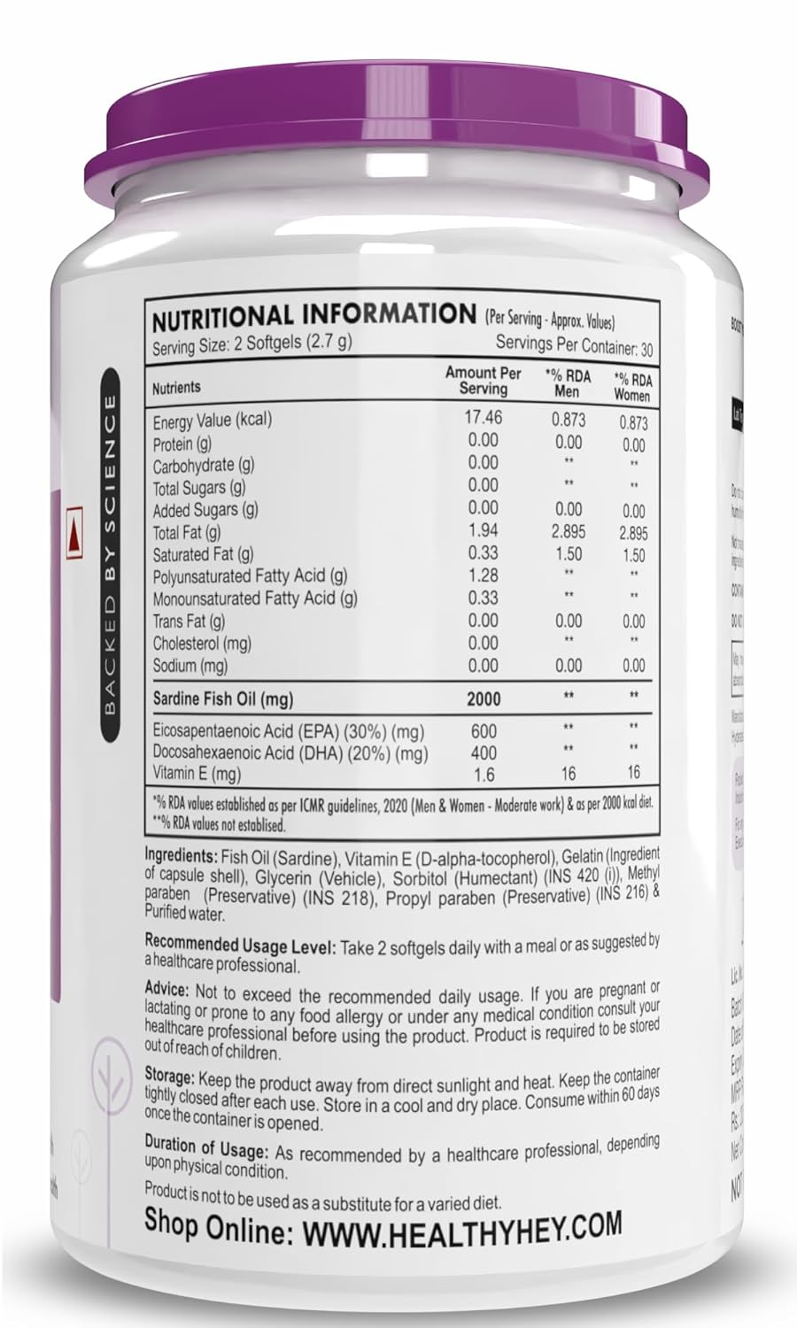 HealthyHey Nutrition Fish Oil Omega 3 60 Softgel