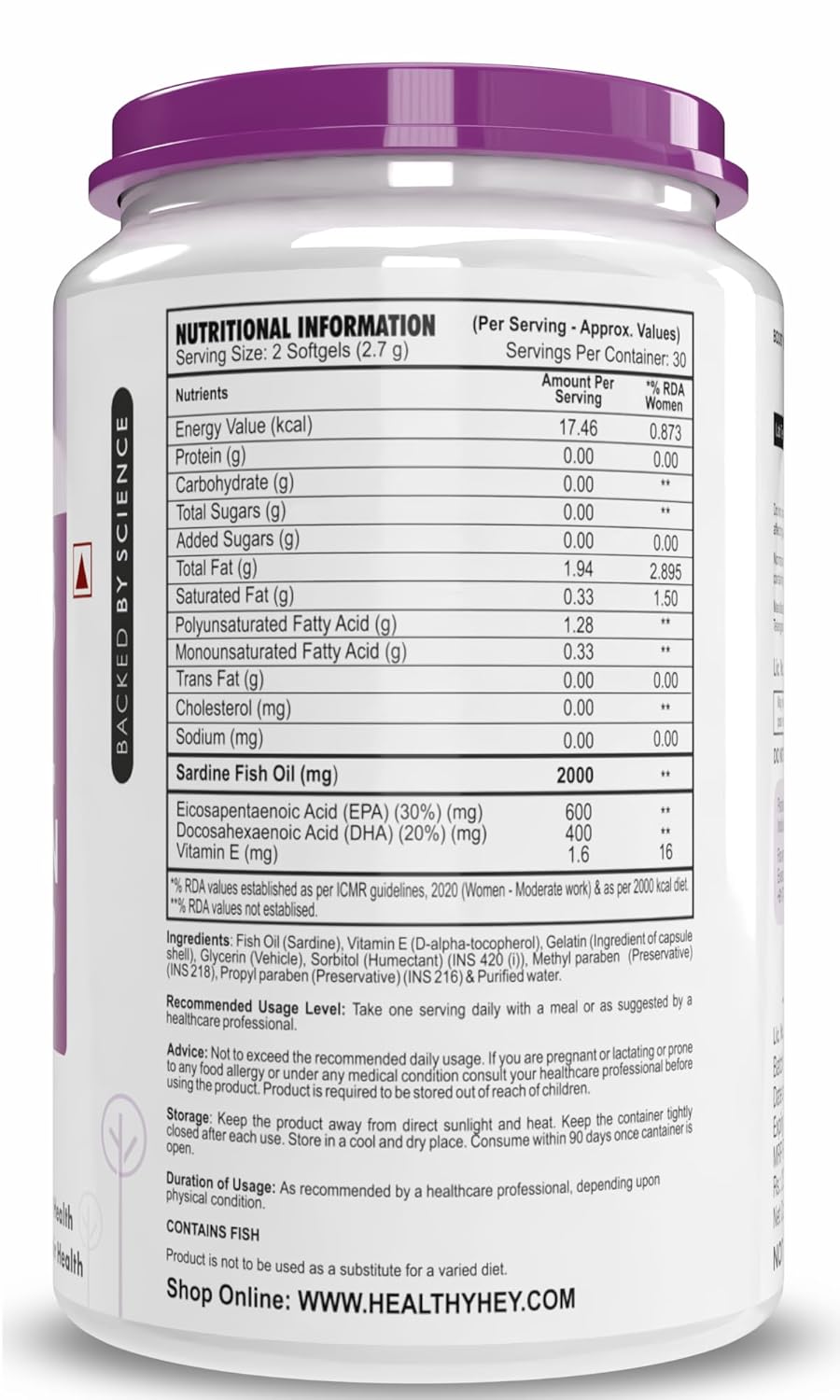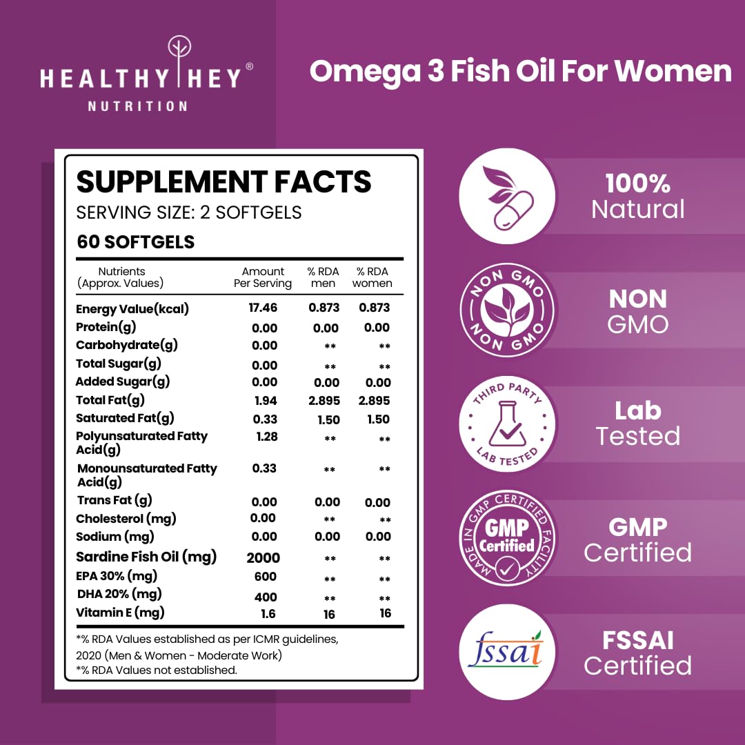 HealthyHey Nutrition's Optimum Series Fish Oil delivers concentrated omega-3 support with 2,000 mg of premium sardine fish oil per serving. Each capsule provides 1,000 mg omega-3 fatty acids including 400 mg DHA and 600 mg EPA offering 3-4 times more omega-3s than many competing brands. A single serving meets daily DHA recommendations, making supplementation effortless. Omega-3 fatty acids are scientifically recognized as essential nutrients that support cardiovascular health, cognitive function, joint mobility, emotional balance, and skin and hair vitality. This double-strength formula ensures you receive meaningful nutritional support in every dose.