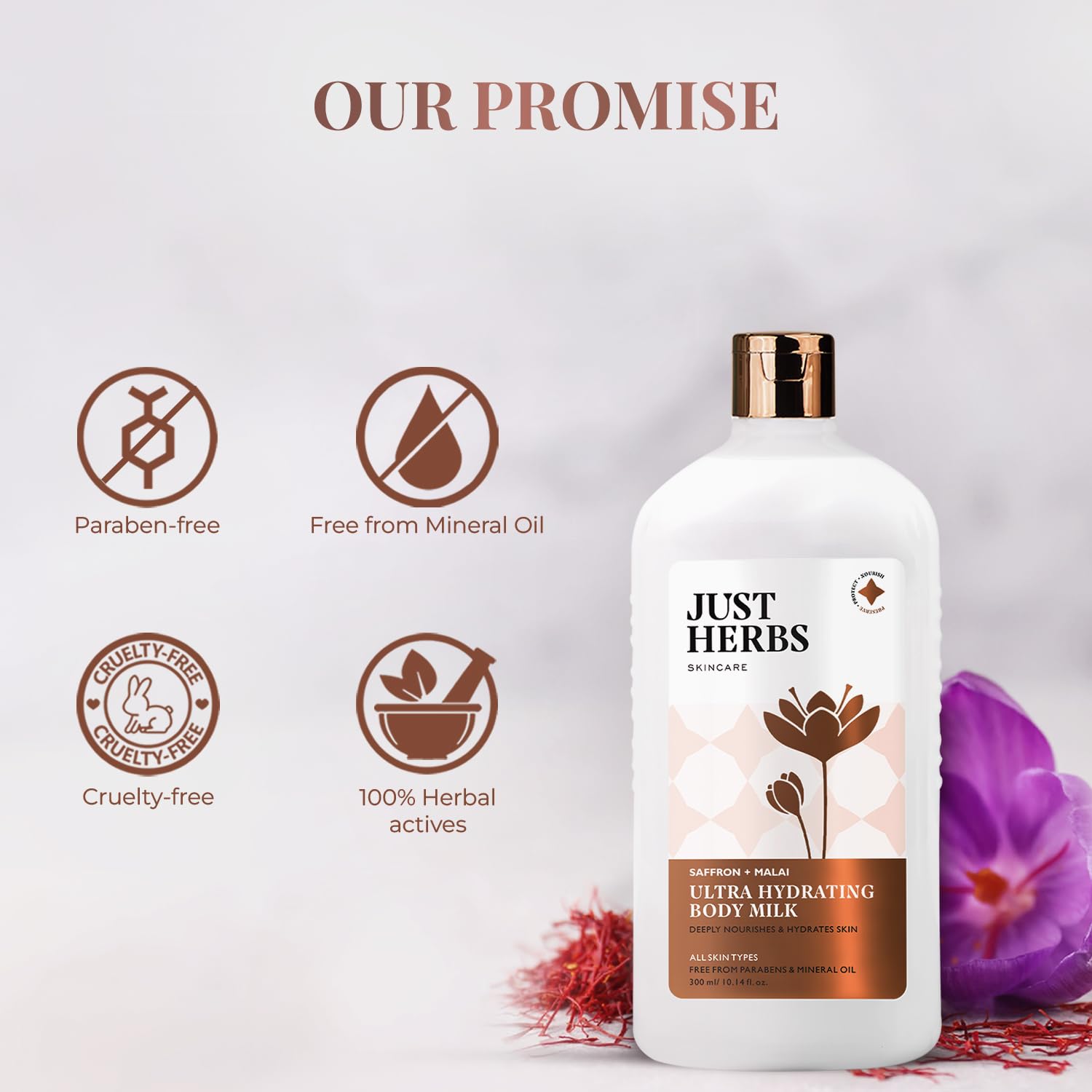 Just Herbs Saffron + Malai Nourishing Body Milk Moisturizer for Men & Women -300ml