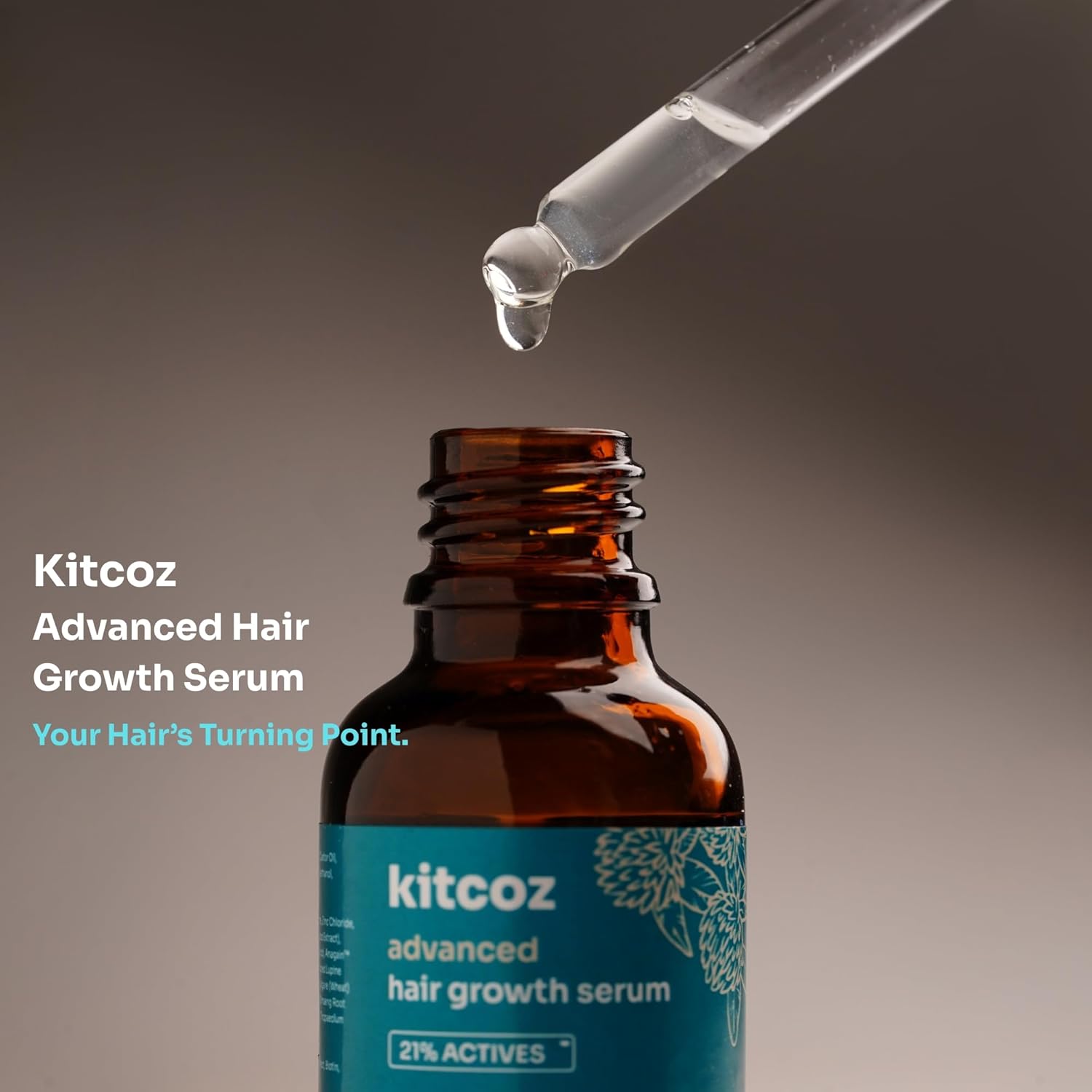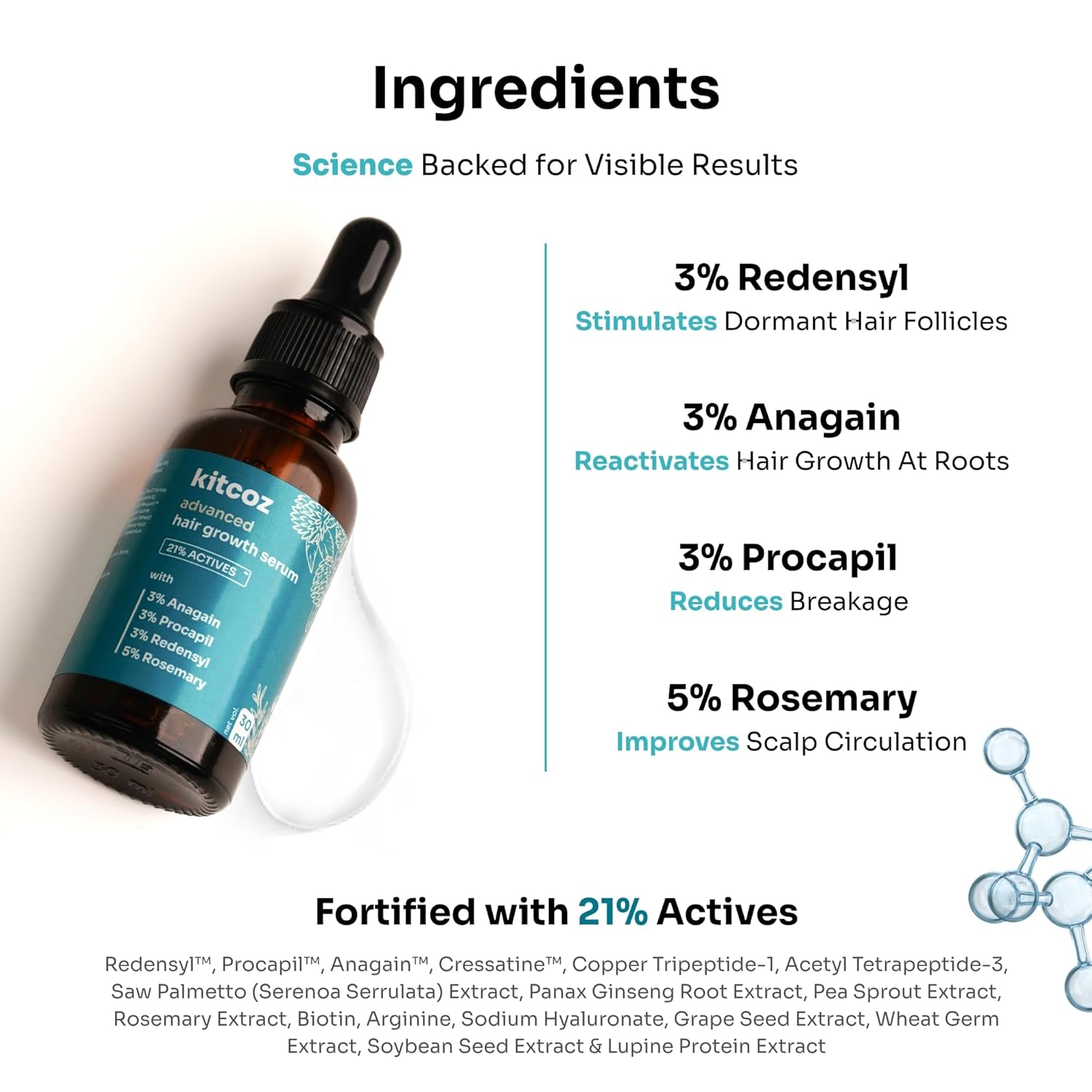 Kitcoz Advanced Hair Growth Serum Concentrate with 21% Actives | 3% Anagain, 3% Procapil, 3% Redensyl & 5% Rosemary Extract -30ml