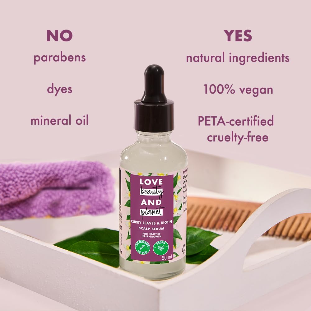 Love Beauty & Planet Curry Leaves & Vegan Biotin, Hair Growth Scalp Serum 50ml