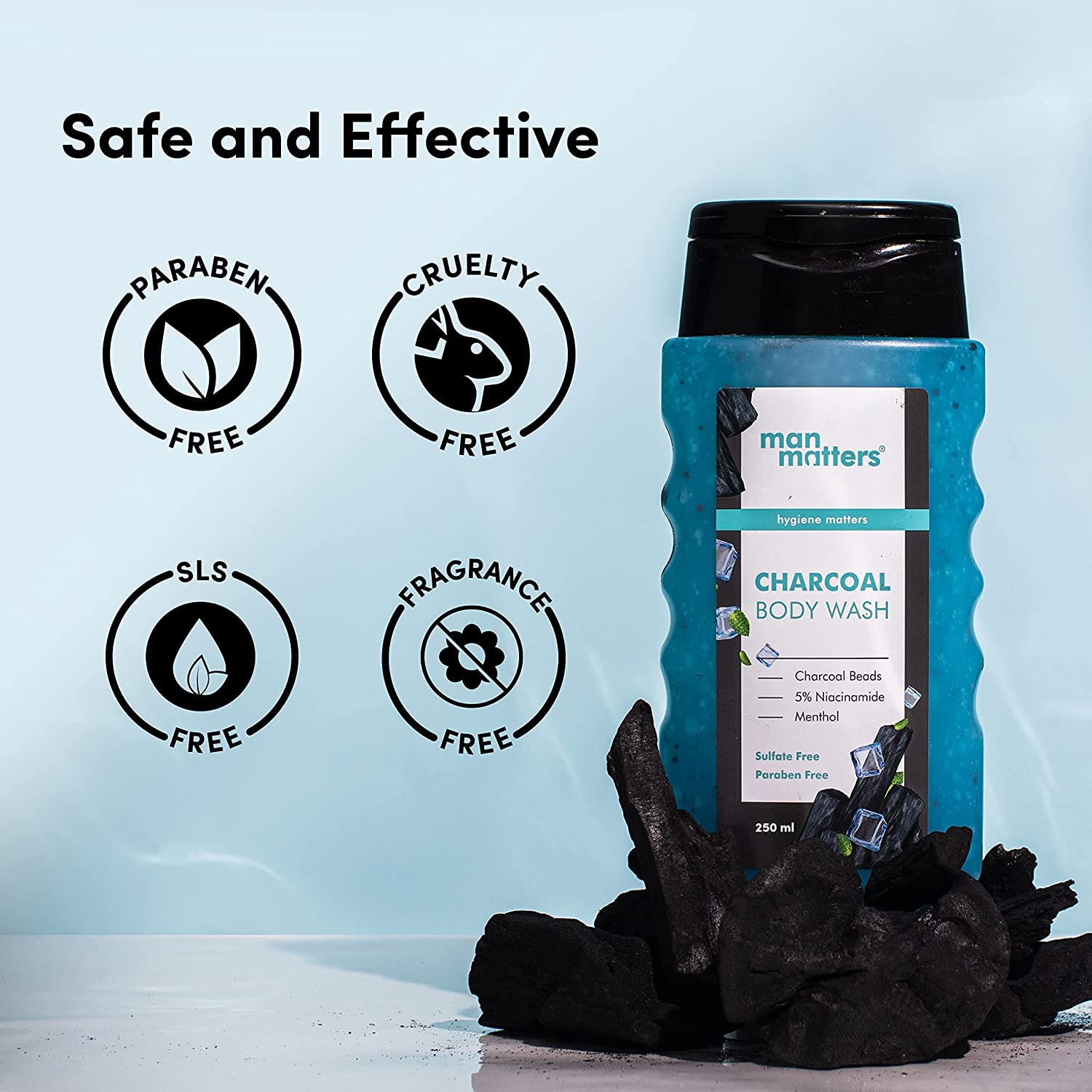 Man Matters 3 in 1 Action Charcoal & Menthol Body Wash with Loofah-250ml