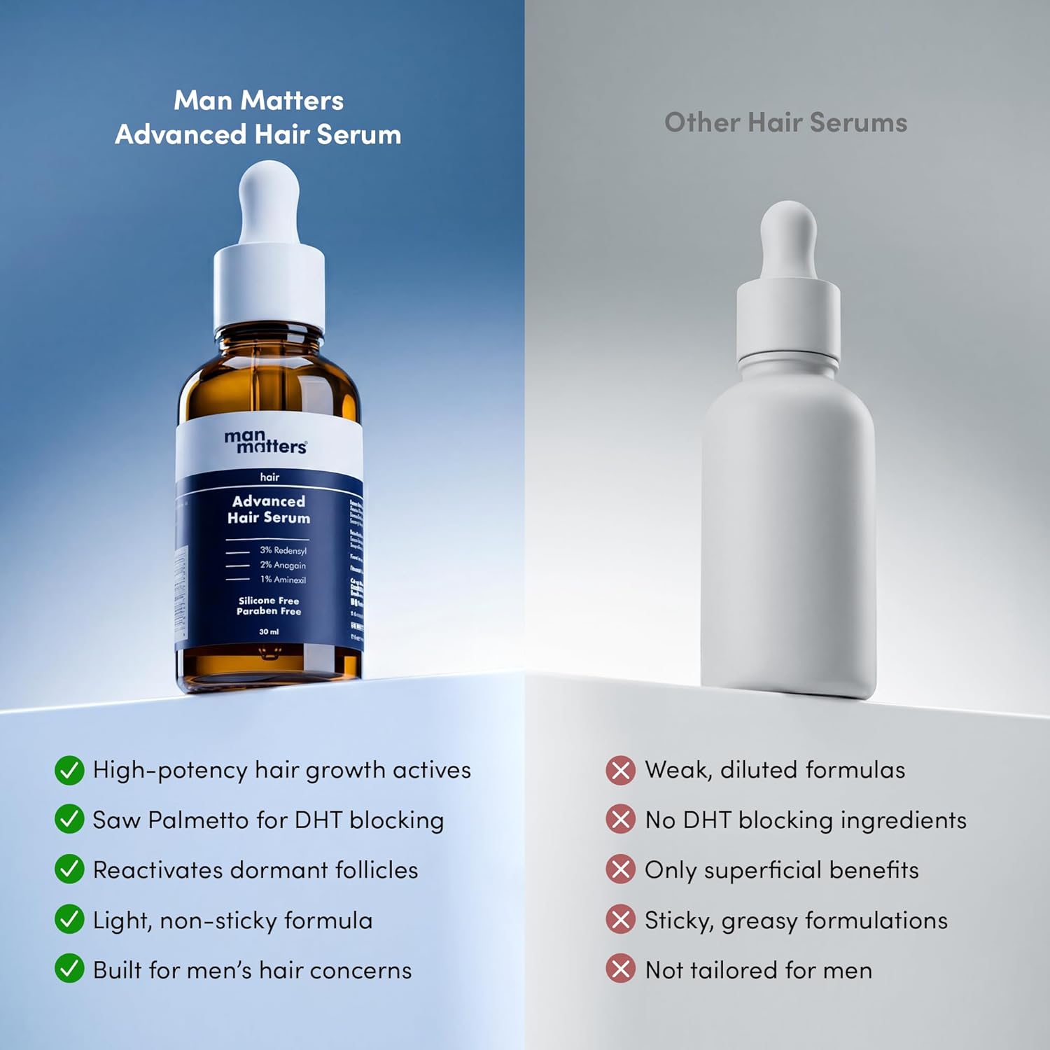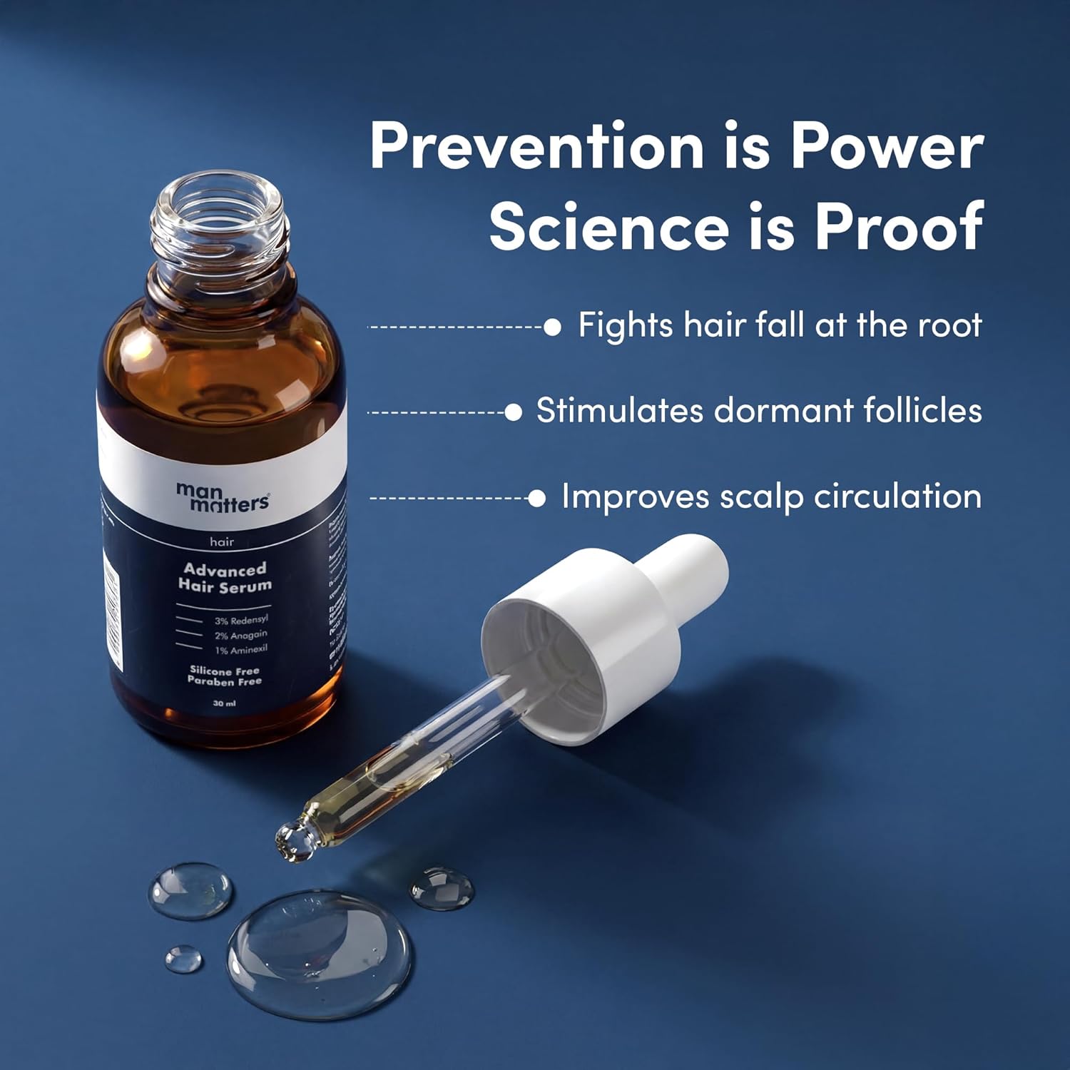 Man Matters Advanced Hair Serum 30ml | 23% actives (3% Redensyl, 2% Anagain & 1% Aminexil, Rosemary Leaf Extract)