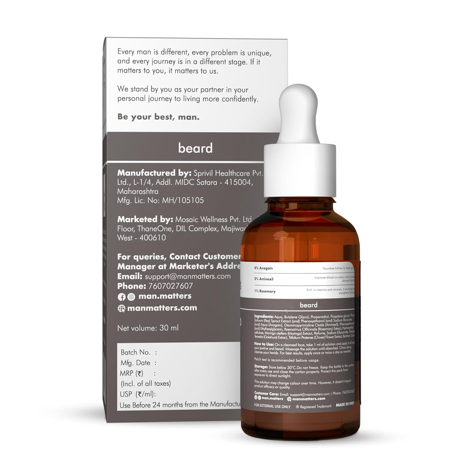 Man Matters Beardgro Oil-In-Serum 30Ml | 4% Anagain, 2% Aminexil & 1% Rosemary