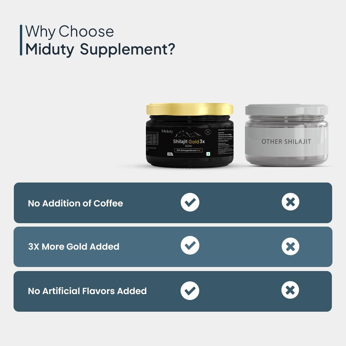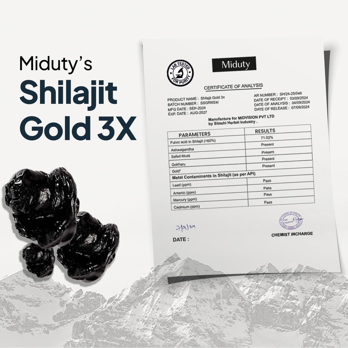 Miduty Shilajit Gold 3X Resin 500–1000 mg Serving - 20 grams