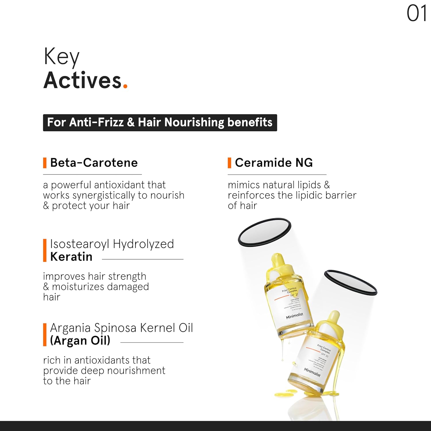 Minimalist Hair Serum for Dry Frizzy Hair with SPF 30, Keratin, Argan Oil & Ceramides -50ml