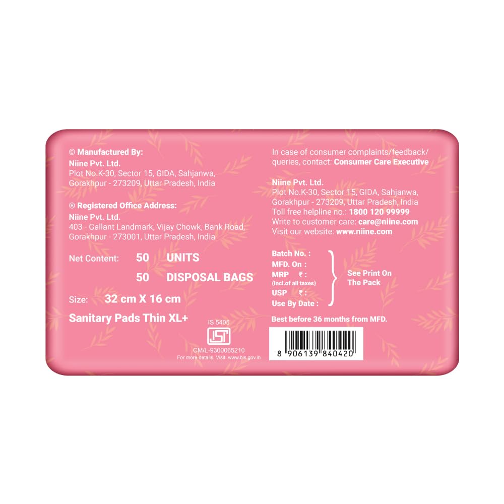 NIINE Naturally Soft Ultra Thin XL+ Sanitary Napkins |320mm (Pack of 1) 50 Pads