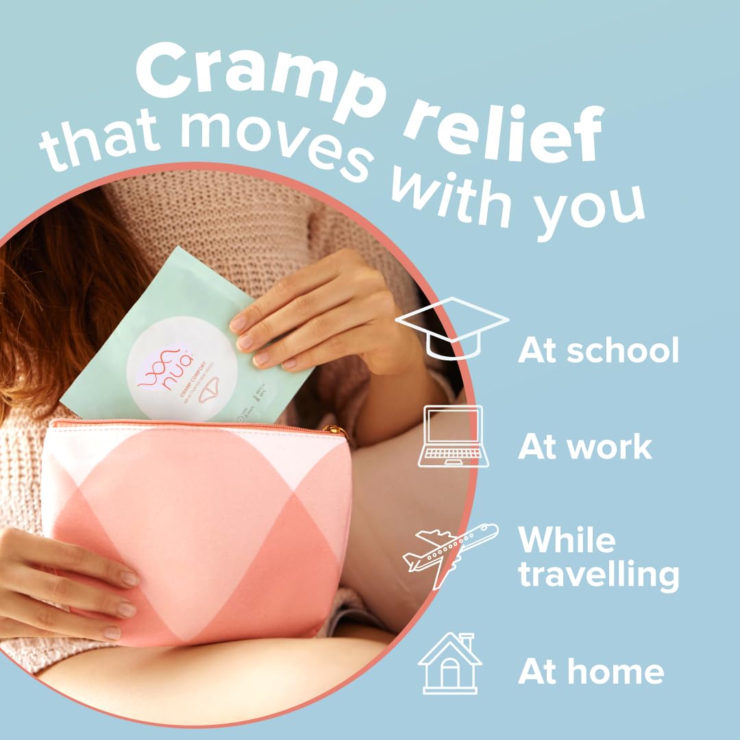 Experience soothing relief when you need it most with Nua Cramp Comfort heat patches. This pack of three portable patches delivers targeted warmth directly where discomfort strikes, providing up to 8 hours of continuous pain relief. Crafted from 100% natural ingredients, these patches offer a gentle yet effective solution for period cramps and menstrual pain. Simply apply and go—perfect for work, school, or everyday activities. Say goodbye to interruptions and hello to comfort that moves with you.