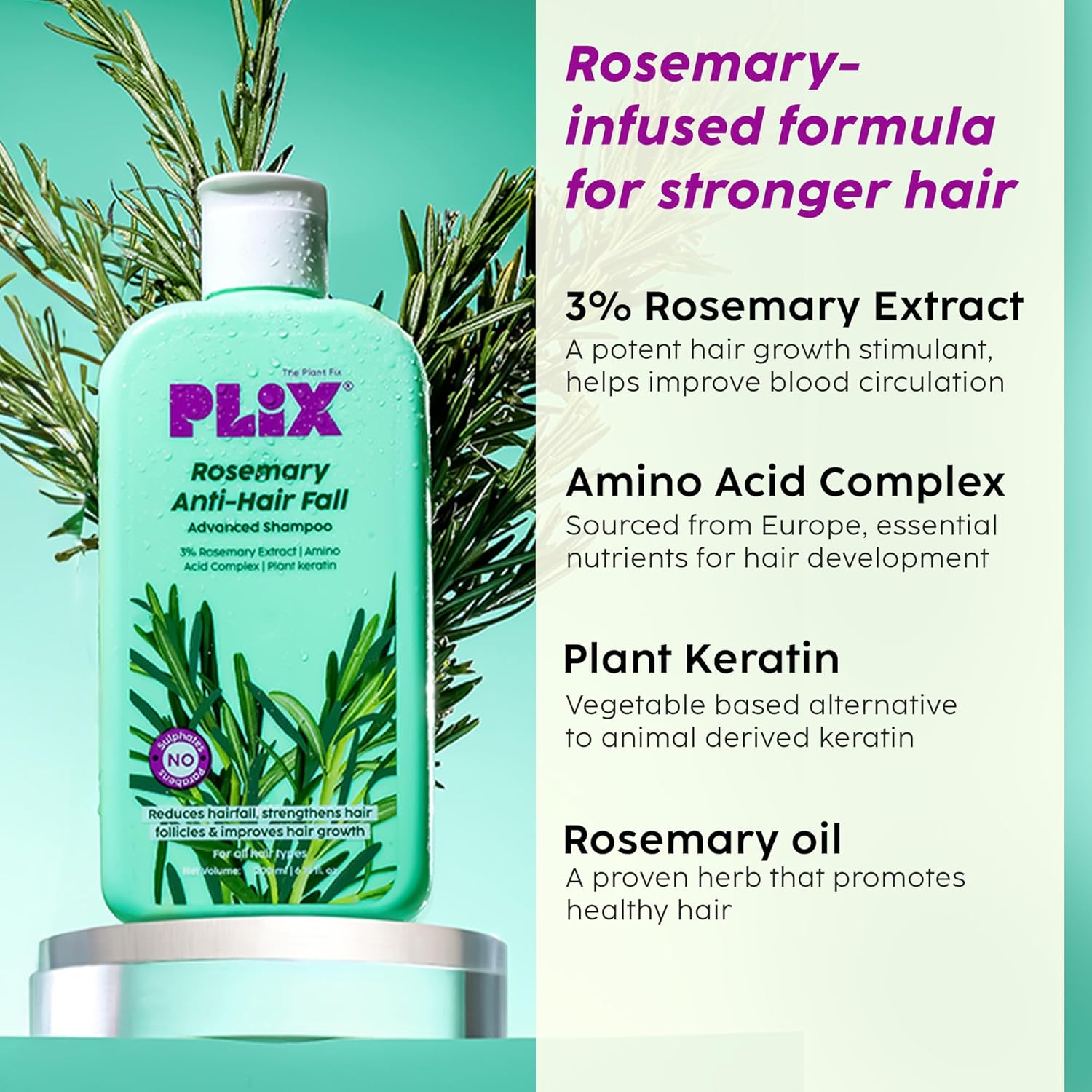 PLIX - THE PLANT FIX Rosemary Anti Hairfall Kit - Serum (30ml), Shampoo (200ml), Conditioner (175ml) & Oil (100ml)