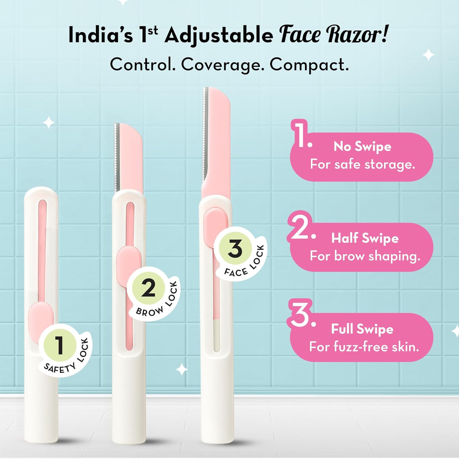 Achieve smooth, flawless skin with Plush Swipe Reusable Face Razors—the gentle solution for women's facial hair removal. This pack of 2 features adjustable blades for precise control, perfect for eyebrows, upper lip, forehead, peach fuzz, chin, and sideburns. The dual lock long-lasting technology ensures durability and reliability with every use. Painless and instant results without irritation, these travel-friendly razors deliver professional-quality grooming at home. Safe, effective, and reusable—your new essential for confident, radiant skin.