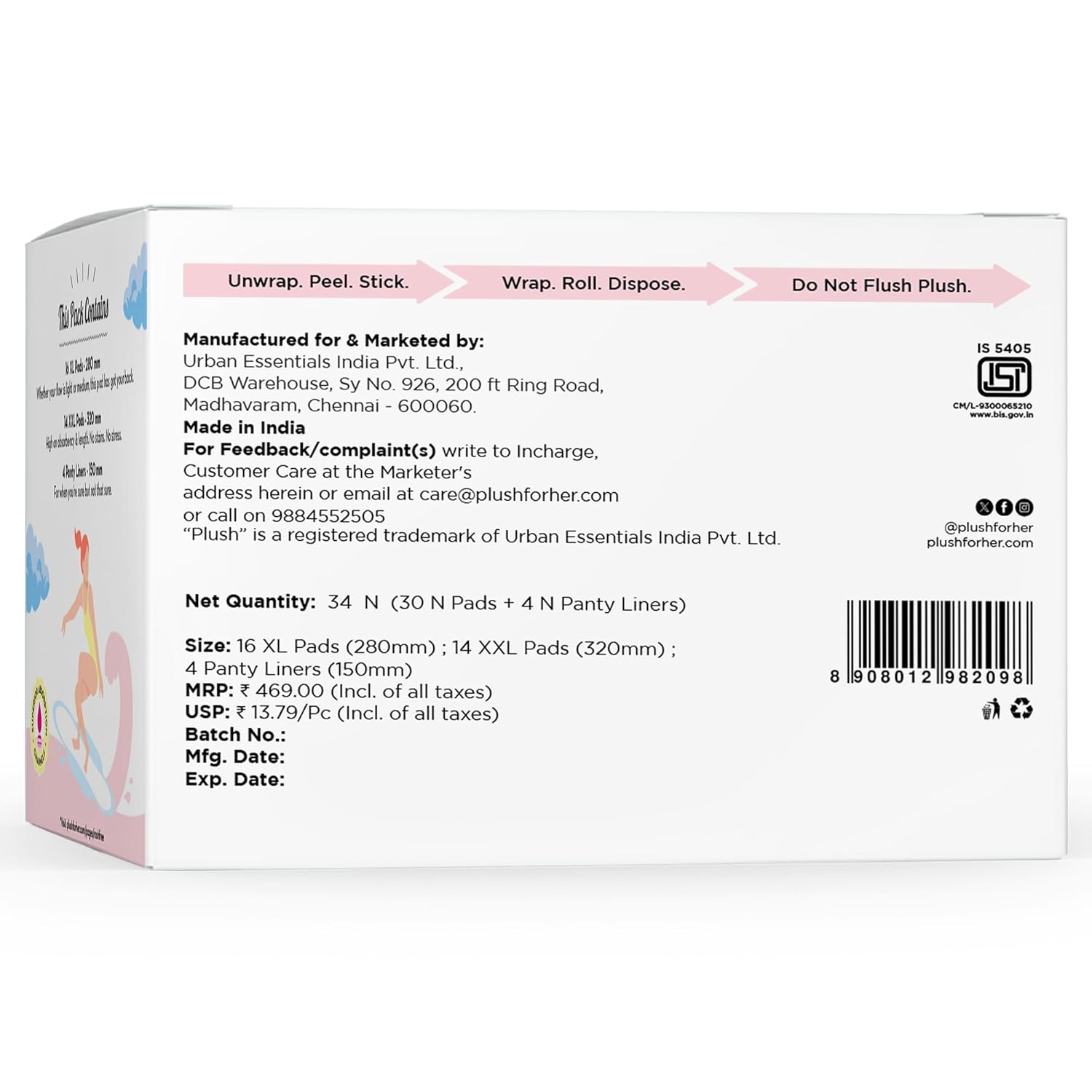 Plush Ultra-Thin Sanitary Napkins for Women, 30 Pcs | 16 XL Pads (Light-Medium Flow), 14 XXL Pads (Heavy Flow), 4Panty Liners