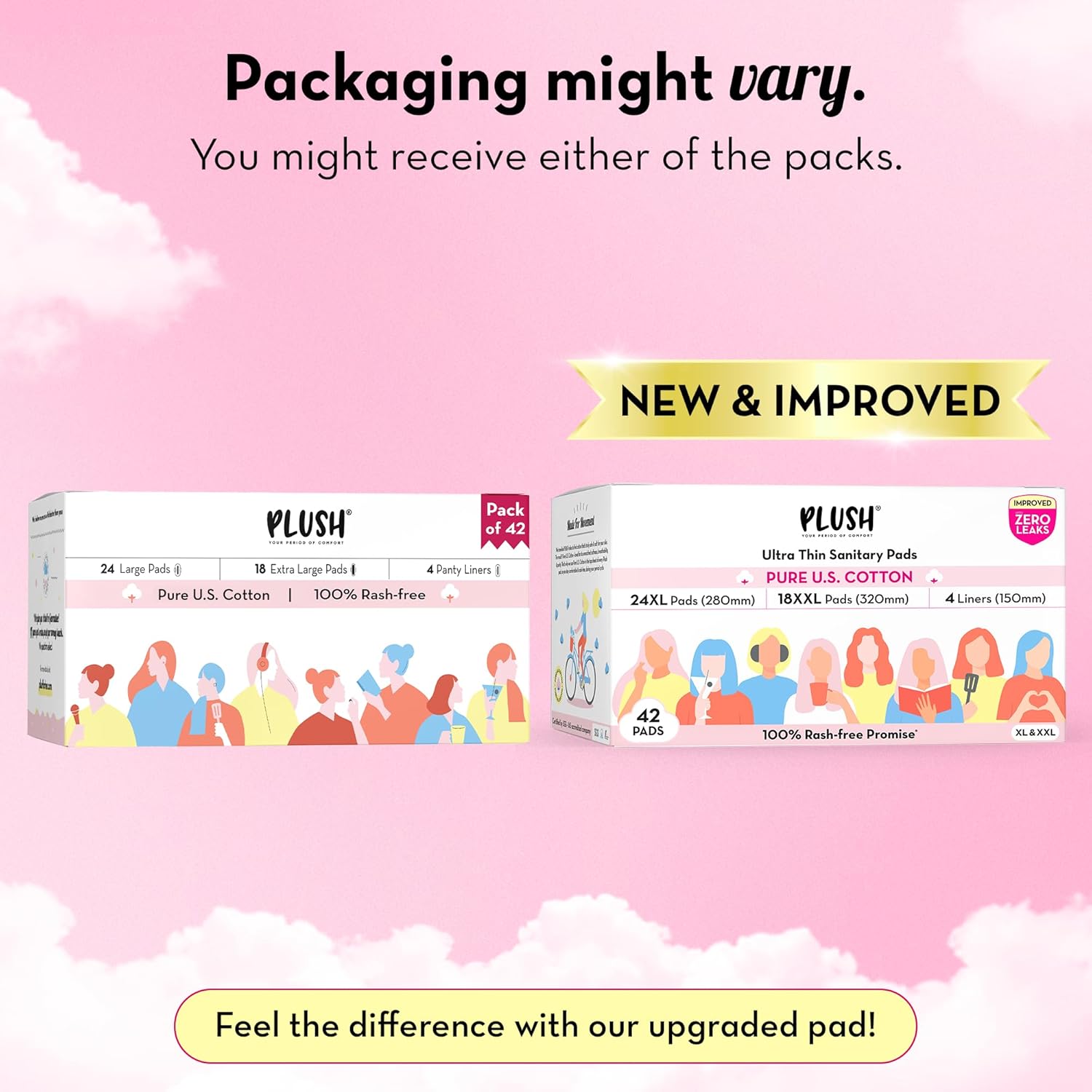 Plush Ultra-Thin Sanitary Napkins for Women, 42 Pcs