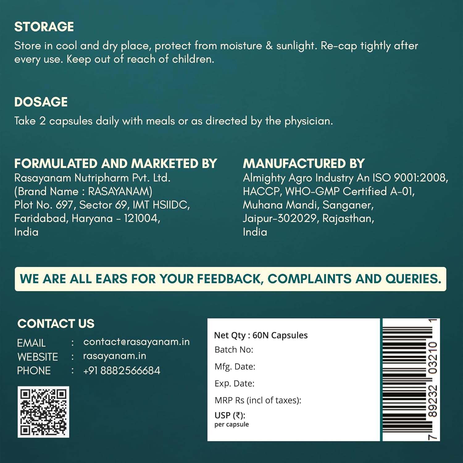 Rasayanam Plant Based Omega-3 Capsules, 1600 mg - 60 Capsules