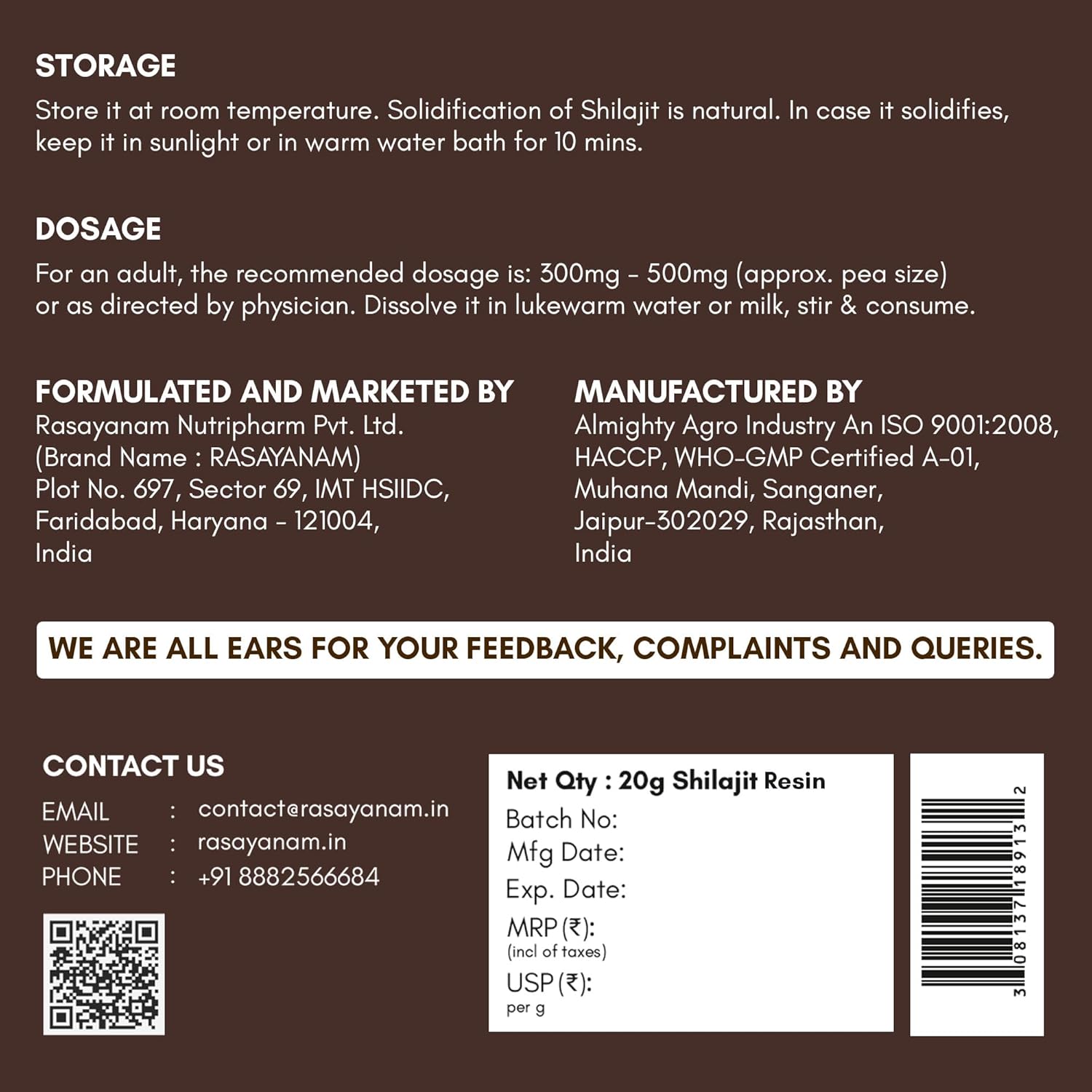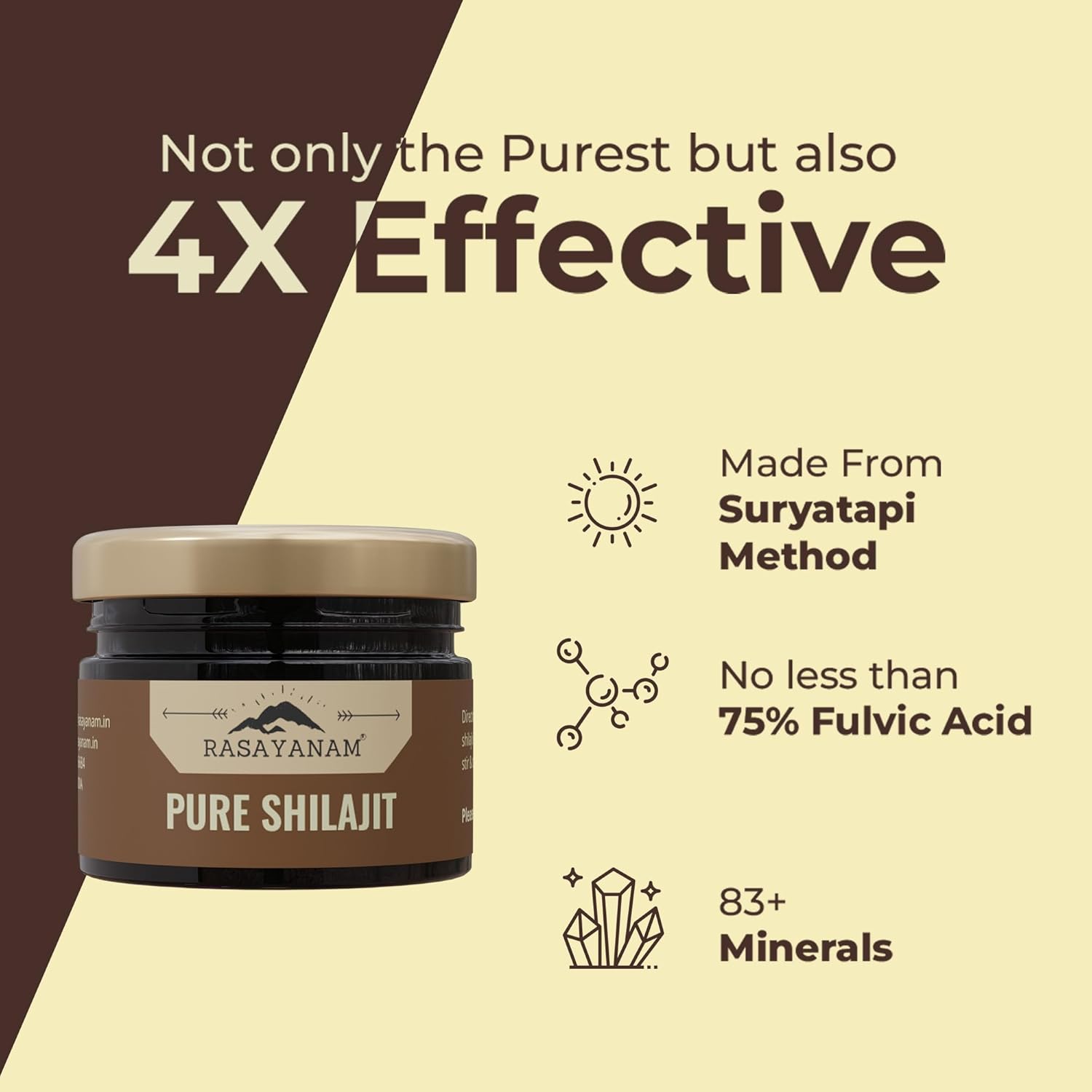 Rasayanam Pure Himalayan Shilajit Resin harnesses the power of nature's most potent mineral concentrate. Sourced from the pristine Valley of Padar at 18,000 feet elevation, this authentic shilajit is formed over centuries through the natural decomposition of plant matter within Himalayan rock formations. The result is a nutrient-dense, sticky resin with characteristic dark coloring and distinctive aroma. Each 20-gram serving delivers the full spectrum of minerals and fulvic acid that make high-altitude shilajit prized in traditional wellness practices. Experience the superior quality that comes from uncompromised sourcing and minimal processing.