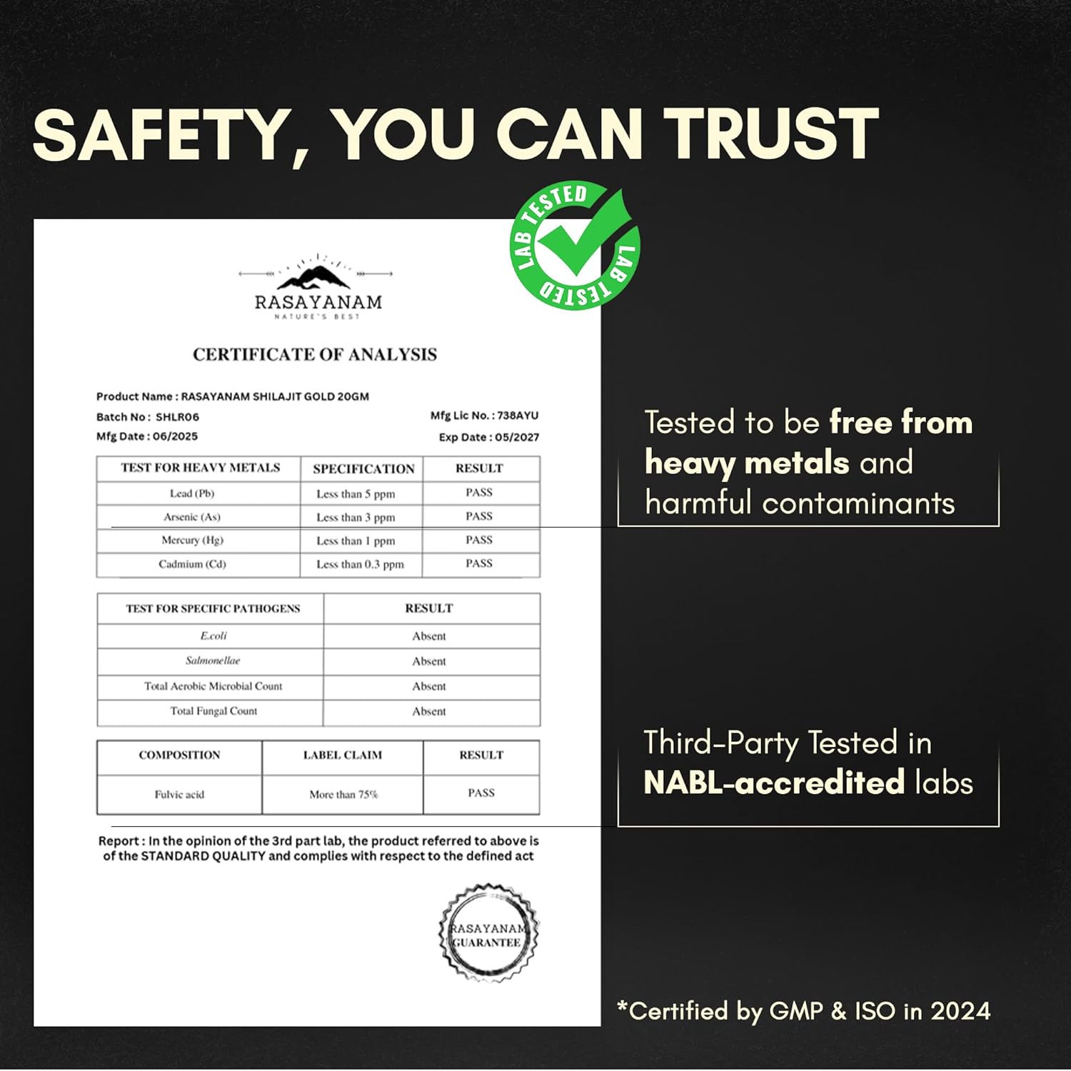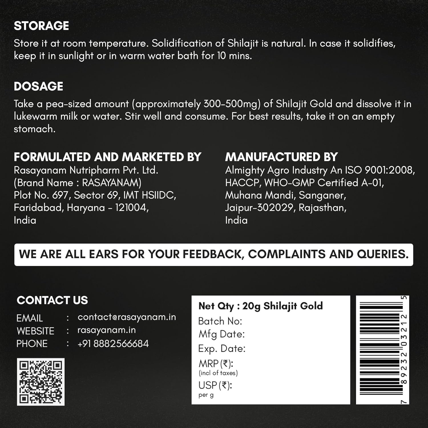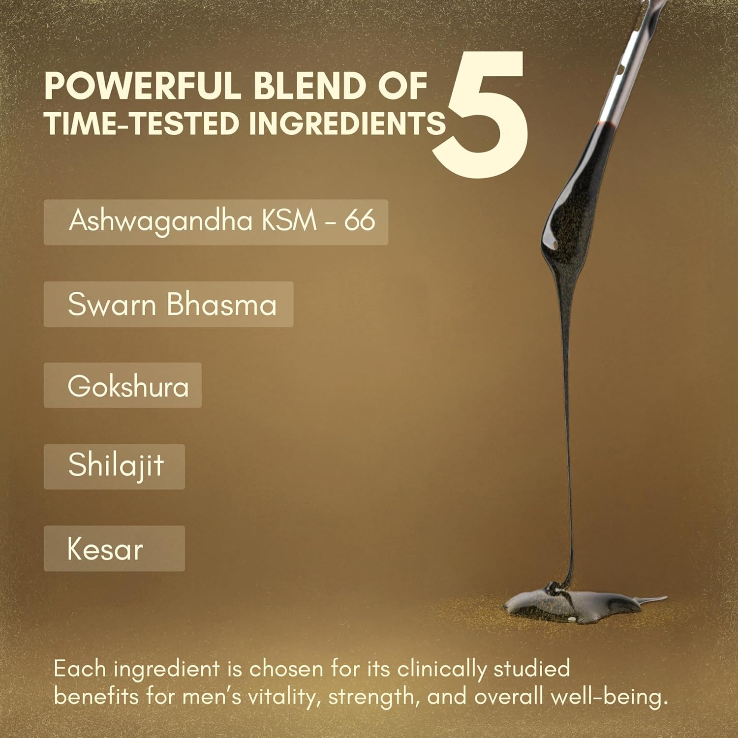 Rasayanam Shilajit Gold represents a meticulously curated formula for those seeking premium wellness support. This 20g resin combines Himalayan Shilajit standardized to 75% fulvic acid with 80+ essential trace minerals, delivering comprehensive mineral bioavailability. Enhanced with clinically studied Ashwagandha KSM-66 for adaptogenic support, saponin-rich Gokshura for vitality, purified Swarn Bhasma (24K Gold), and Grade A1 Saffron, each ingredient is selected for verified purity and potency. This synergistic blend addresses multiple wellness dimensions through scientifically-backed botanicals and mineral complexes, making it an informed choice for discerning health-conscious individuals.