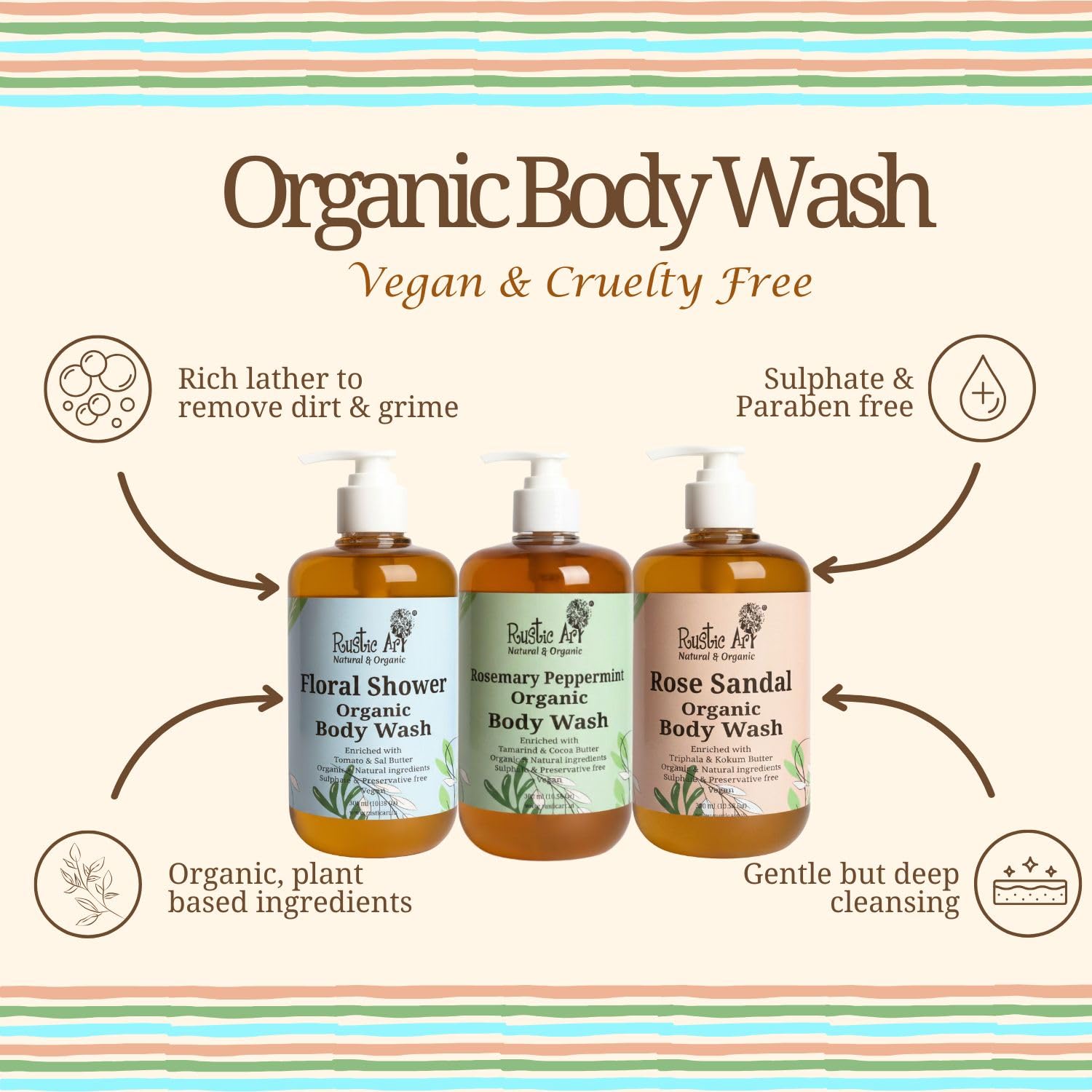 Indulge your skin with the soothing blend of rose and sandalwood in this luxurious body wash. Crafted by Rustic Art,... Read more
