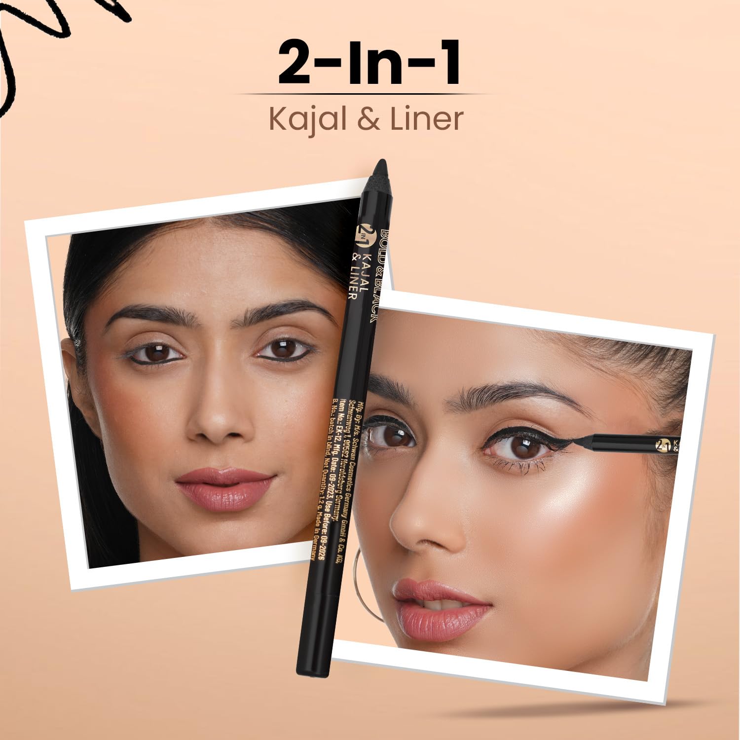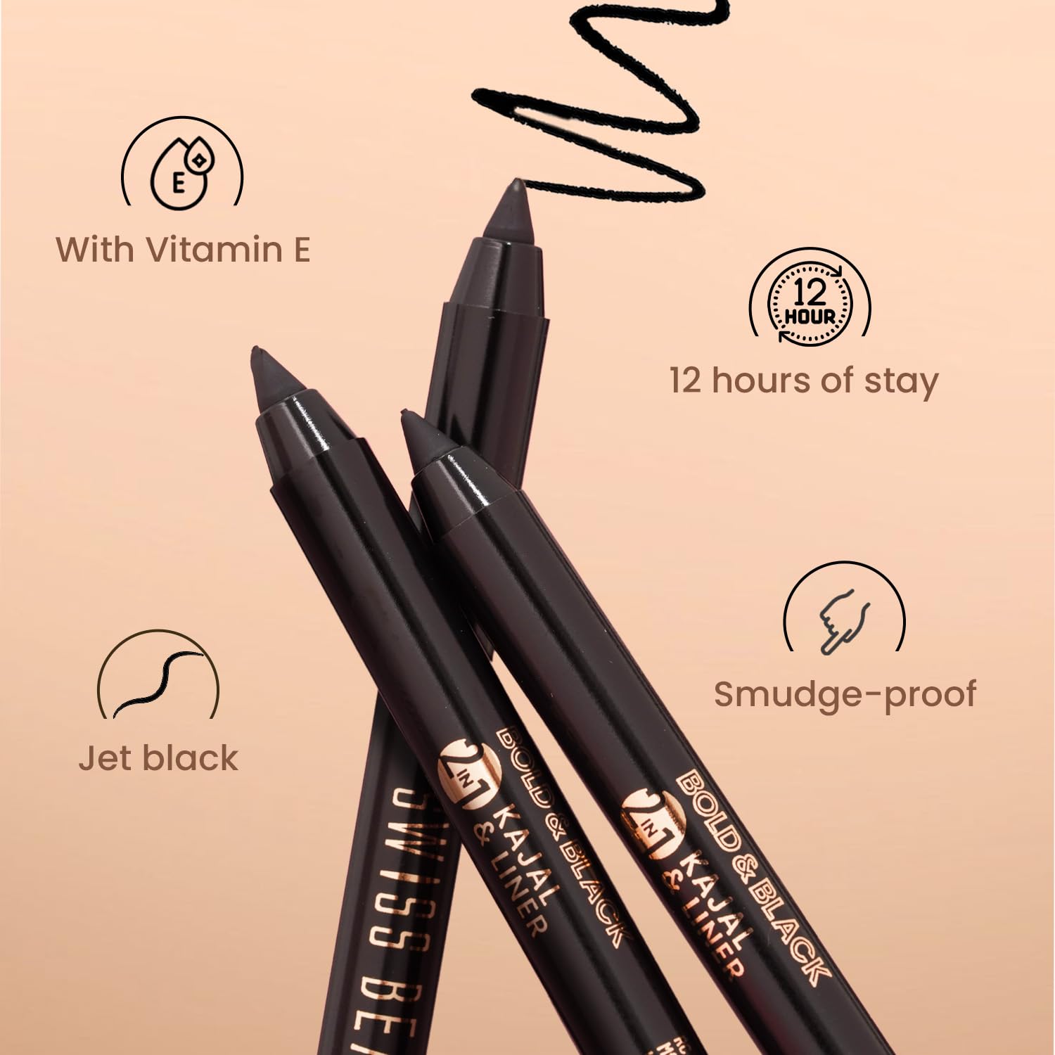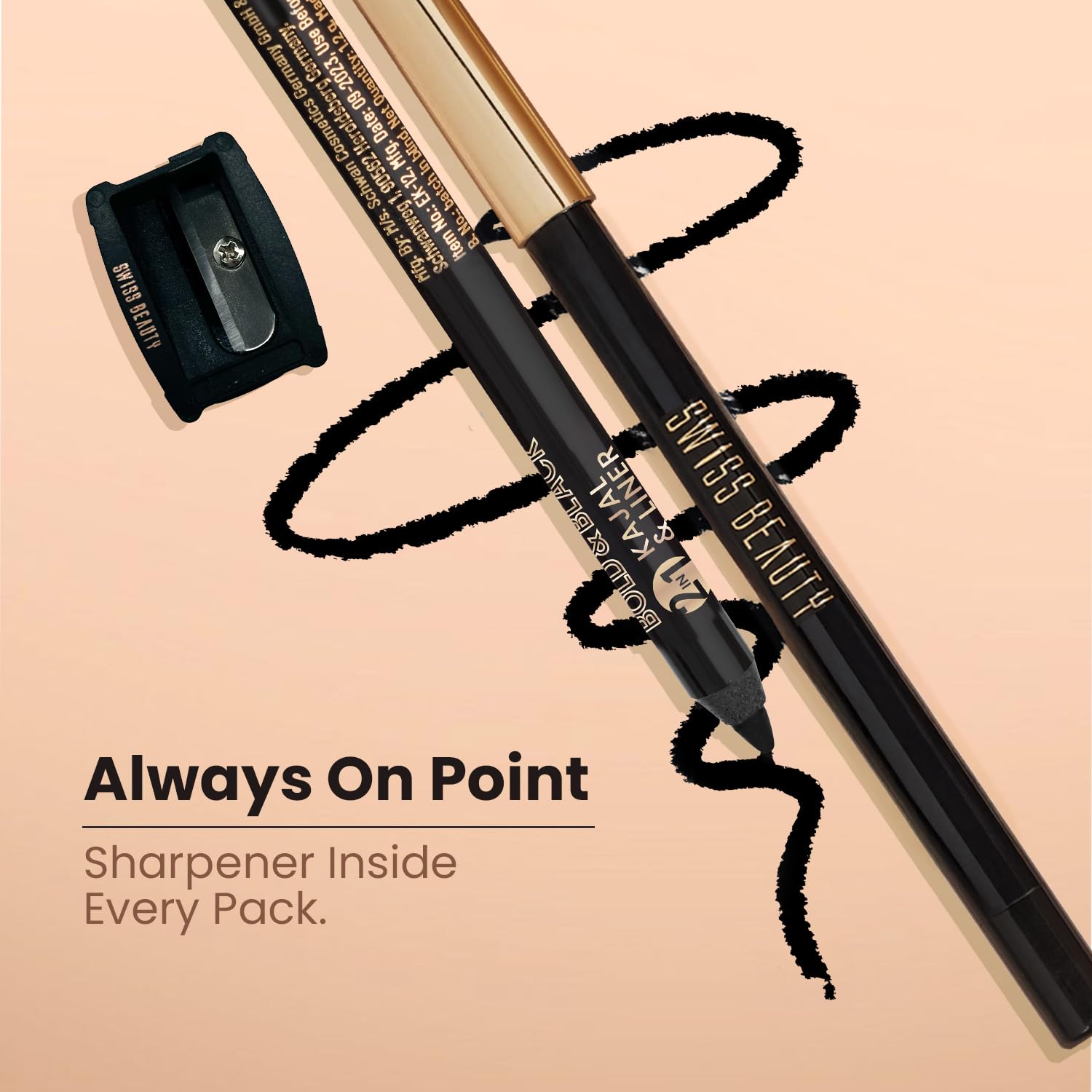 Swiss Beauty Bold & Black Kajal 24Hours Wear, Eye Makeup, Black, 1.2G