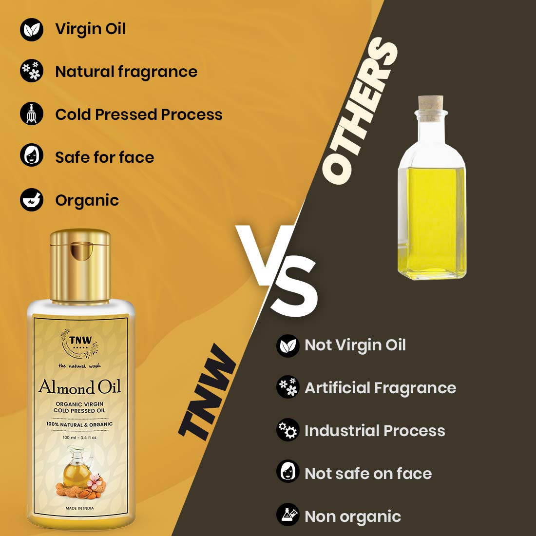 TNW-THE NATURAL WASH Pure Almond Oil 100 ml | With Vitamin E | Organic Virgin Cold-Pressed Oil
