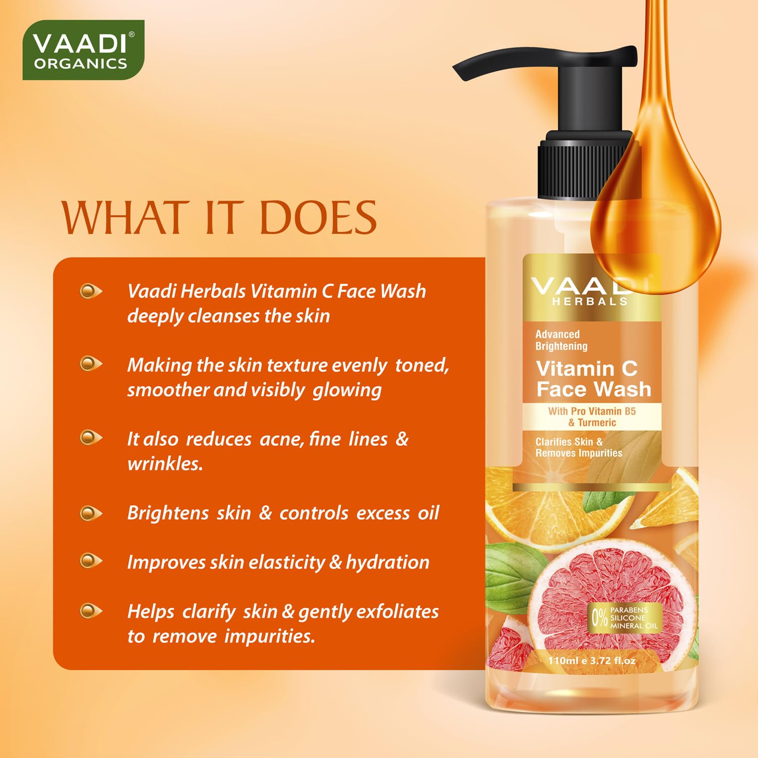 Vaadi Herbals Vitamin C Face Wash With Pro Vitamin B5 & Turmeric 110ml