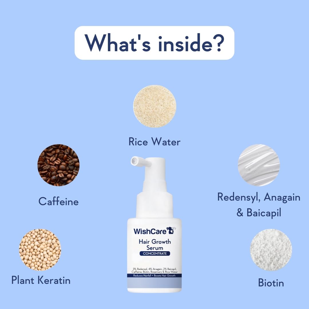 WishCare Hair Growth Serum Concentrate - Resdensyl, Anagain, Caffeine, Biotin, Keratin & Rice Water 20ml