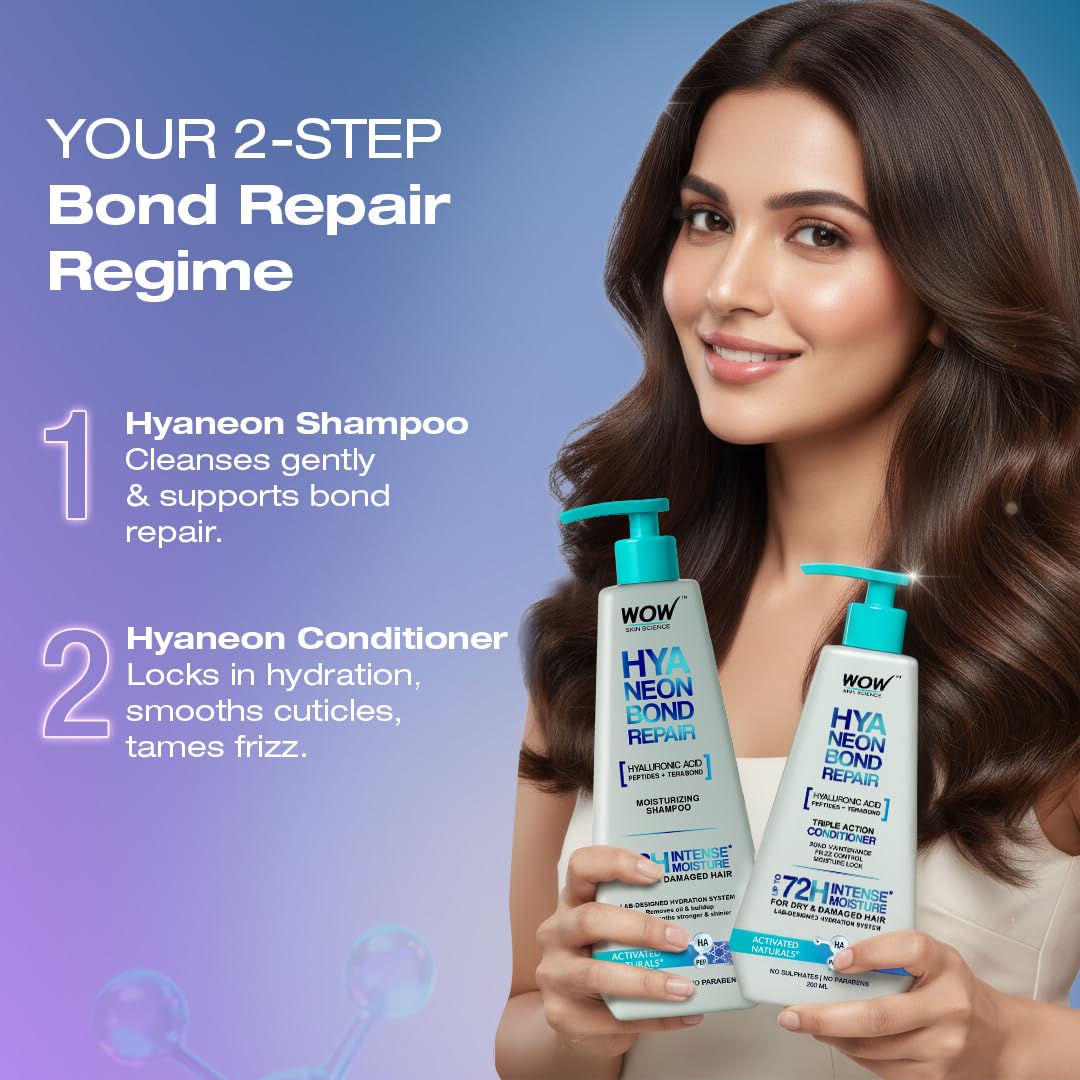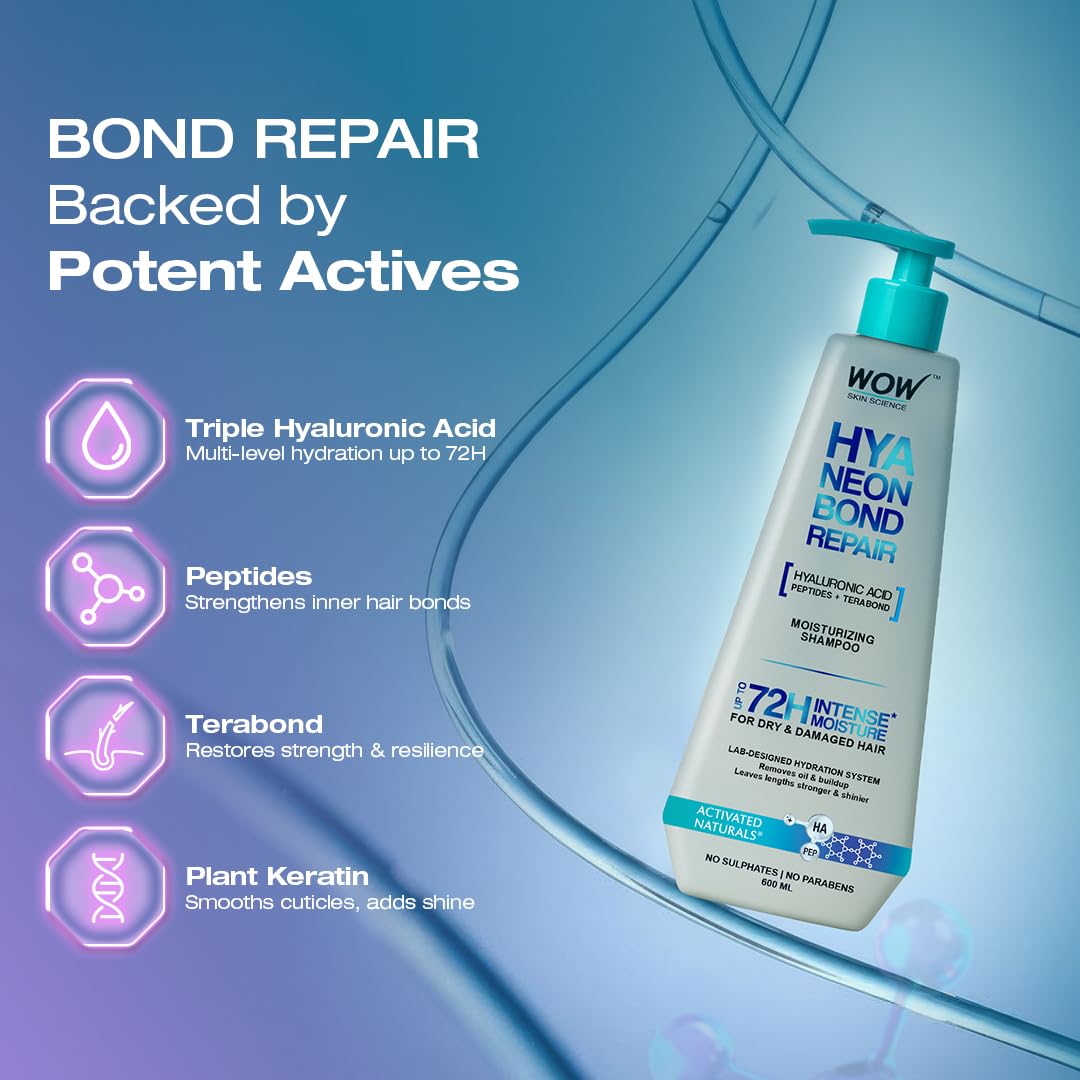 WOW Skin Science HyaNeon Bond Repair Hyaluronic Shampoo for Dry & Damaged Hair-600ml